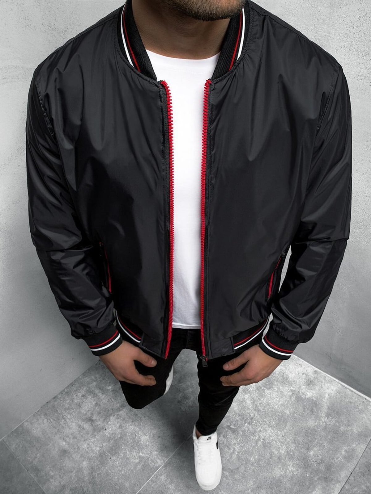 Üde stílusos fekete bomber dzseki. Az átmeneti időszakra. Rövid álló gallér, cipzáros záródás. Az ujjak és a dzseki derékrésze rugalmas passzéval v ellátva, fekete fehér színben. Két oldalsó zsebbel rendelkezik. Egy belső zsebbel is rendelkzik. Minőségi eldolgozású, hétköznapi viseletre alkalmas.