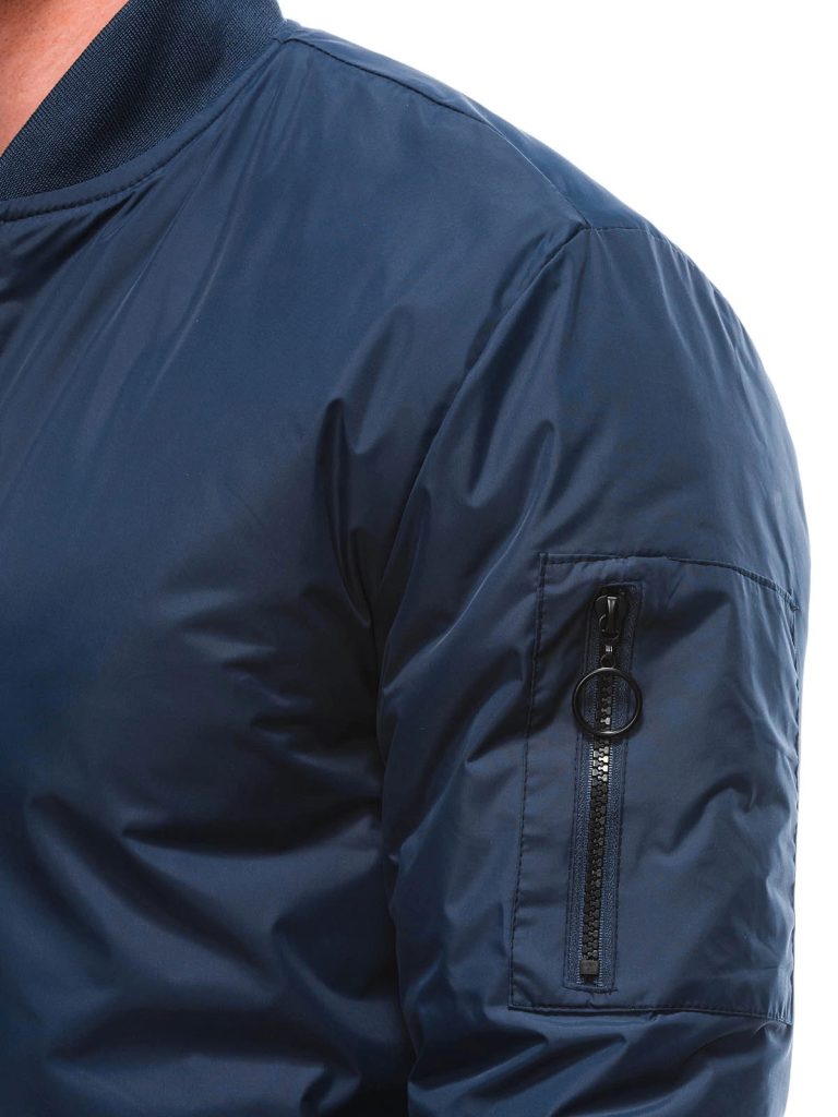 Sötét kék színű férfi bomber dzseki. Kiváló minőségű, puha anyagból készült. Cipzárral záródó. Kapucni nélküli modell. Minőségi eldolgozású. Könnyű, átmeneti dzseki. Két oldalsó cipzáros rögzítésű zsebbel ellátva. Bármilyen outfit-hez.
