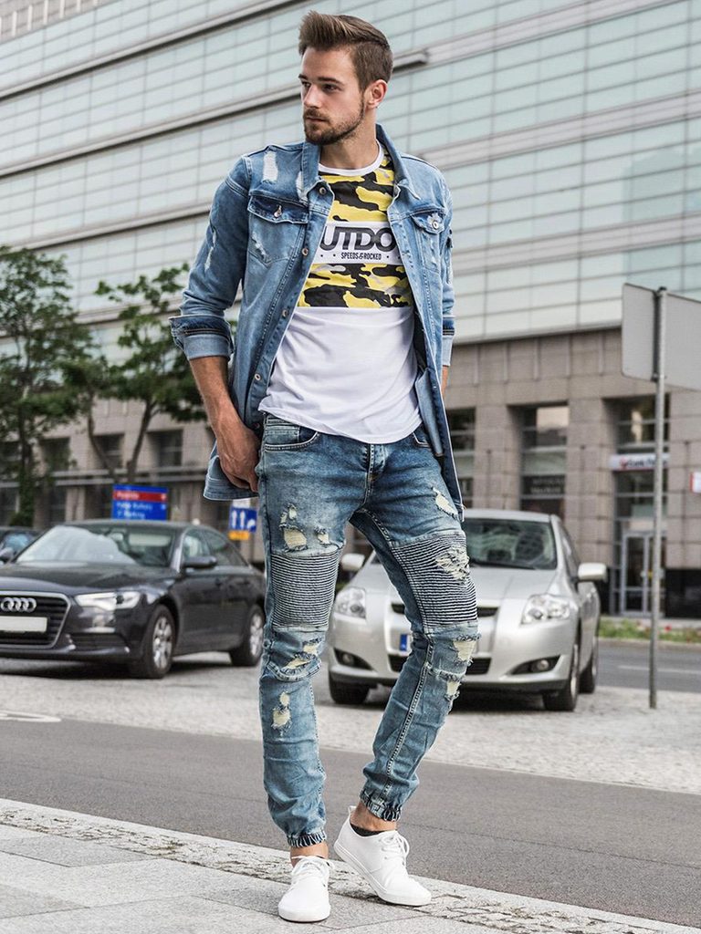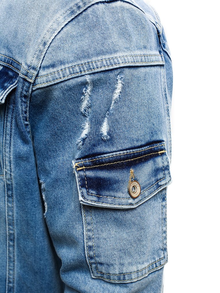 Modern farmer dzseki halvány kék színben. Hosstított fazon. Kényelmes viselet a pamut anyagnak köszönehtően. Két gombos és két nyitott zsebbel ellátva. A koptatott hatás még mondernebbé varázsolja. Koptatott és szakadt hatású. Tökéletes hétköznapi viselet. Kombinálhatja melegítővel és fehér basic pólóval, amelyet megtalál kínálatunkban.