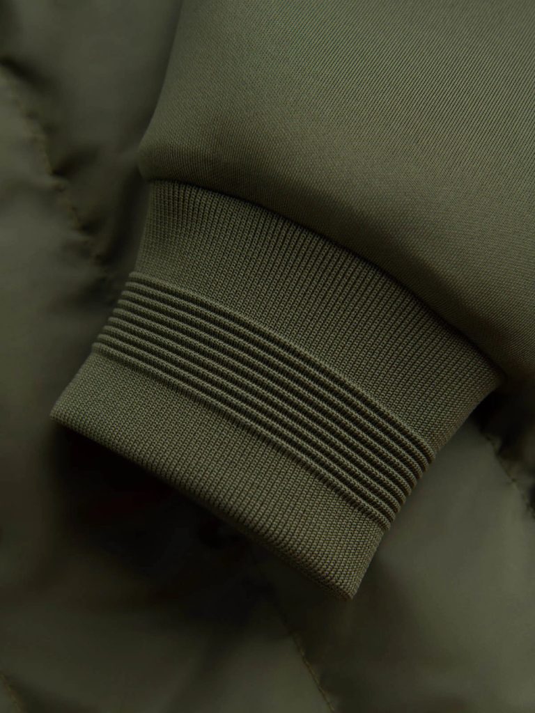 a kabát alsó része és az ujja szegéssel zárva