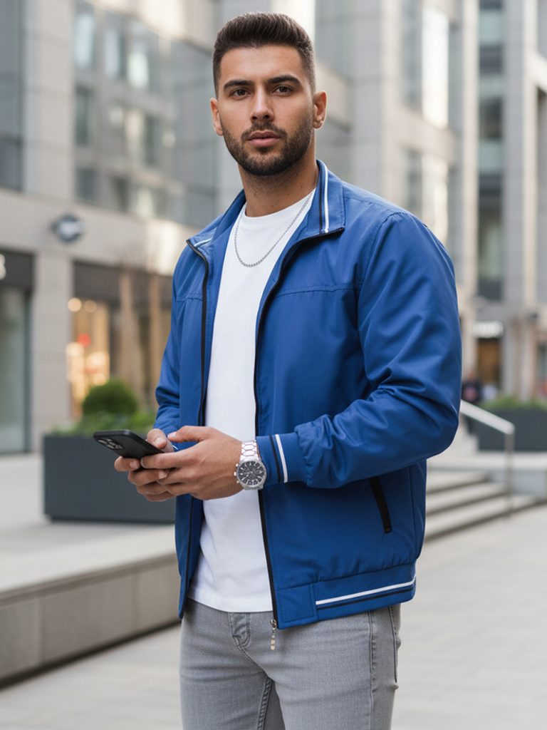 szenzációs férfi átmeneti kabát kapucni nélkül cipzáros rögzítés álló gallér két külső cipzáras zseb ujjak és a kabát alsó része szegéssel befejezett a kabát béléssel rendelkezik külső anyag: 100% PU belső anyag: 100% poliészter