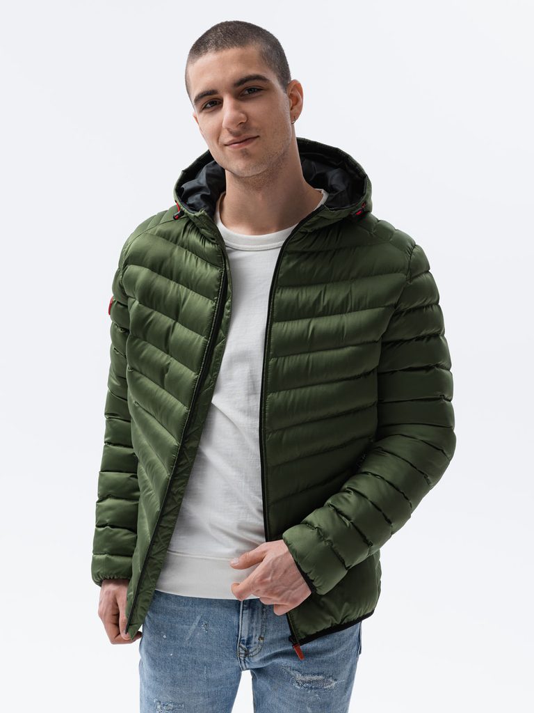 Zöld steppelt dzseki kényelmes anyagból. Különösen puha, könnyű és meleg köztes réteggel - átmeneti kabátnak is megfelel. Végigfutó cipzárral és kapucnival vég elzáróval. Két benyulós, bevágott zseb oldalt és belső zsebbel rendelkezik. Elülső cipzár alávarrt szegéllyel. Jobb kar részén feliratos címke.