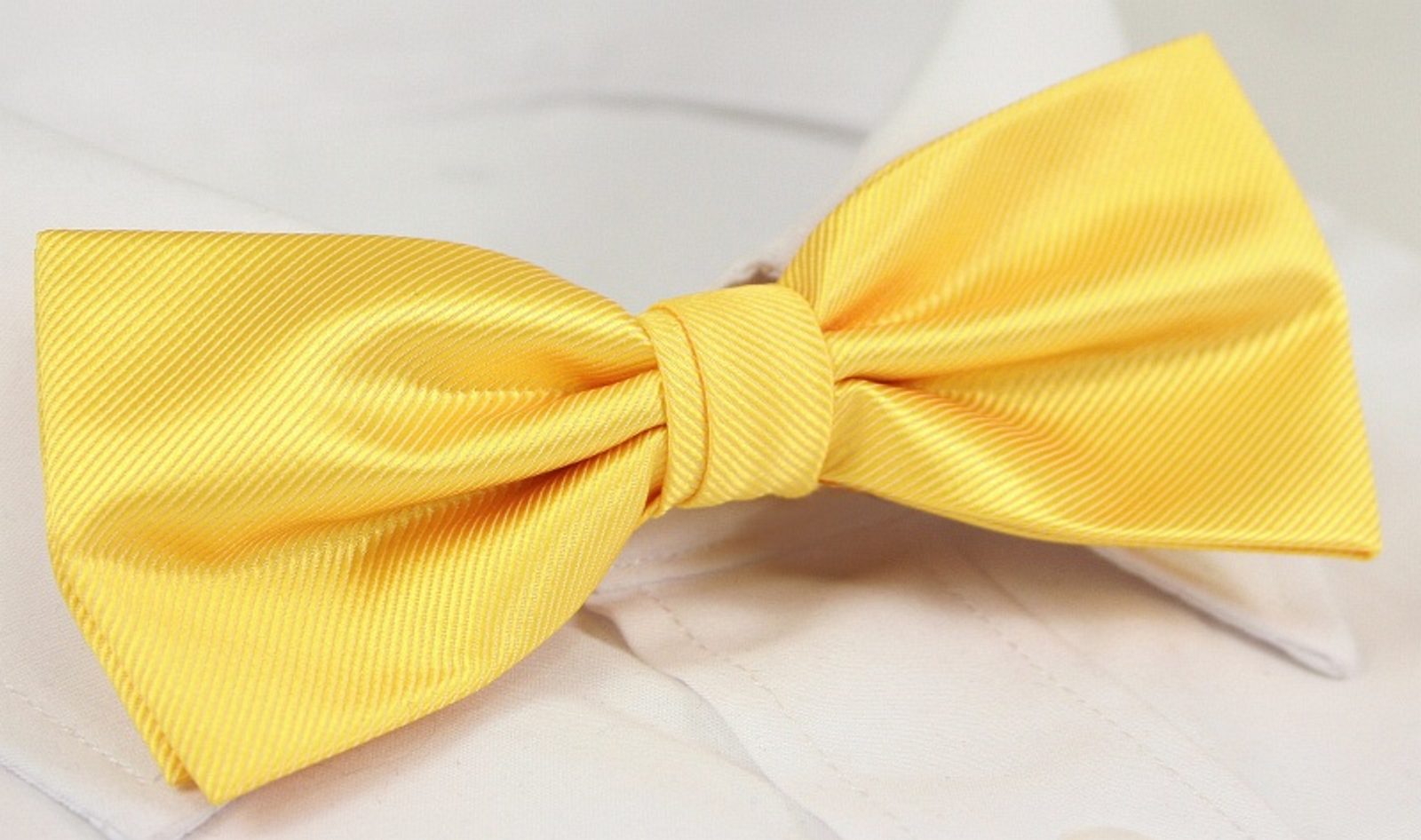 Ünnepélyes férfi csokornyakkendő enyhe ragyogással divatos citrom sárga színben. Struktúr mintás anyagból. A csokornyakkendő állandó kötéses, hossz-szabályozó lehetőséggel. Az összekapcsolás kapocs segítségével lehetséges. Dísz zsbekendővel. Díszdobozban szállítjuk.