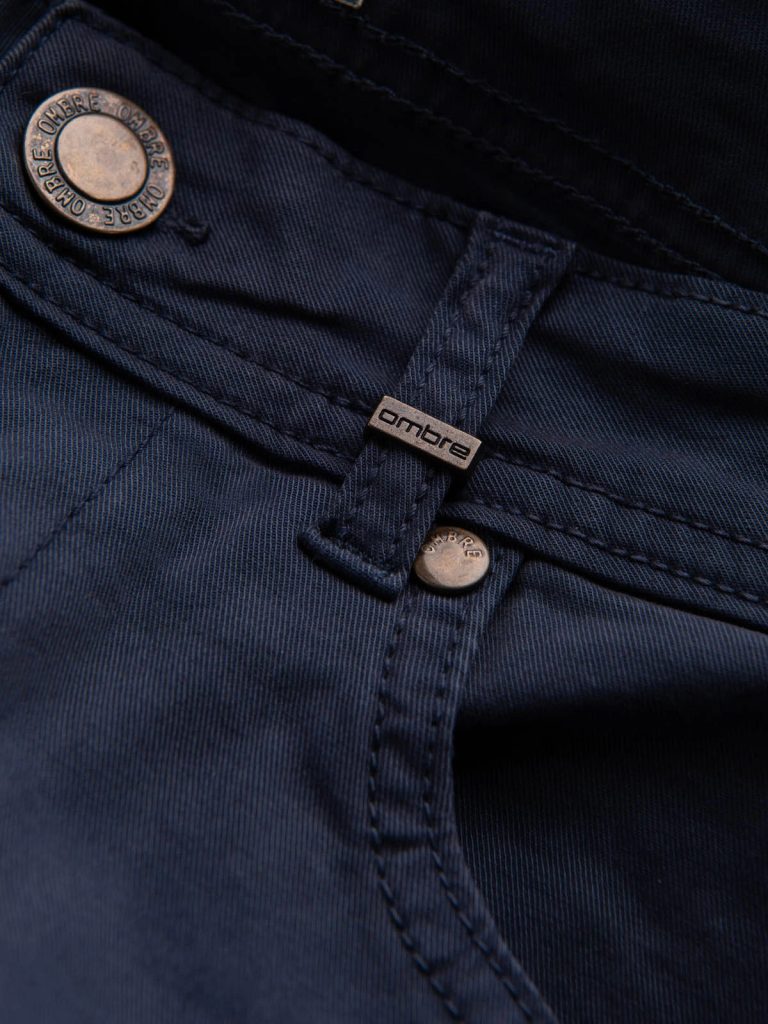 férfi nadrág chino stílusban derékban gombos rögzítés klasszikus szabású két elülső zseb hátul két zseb Anyaga: 98% pamut, 2% elasztán