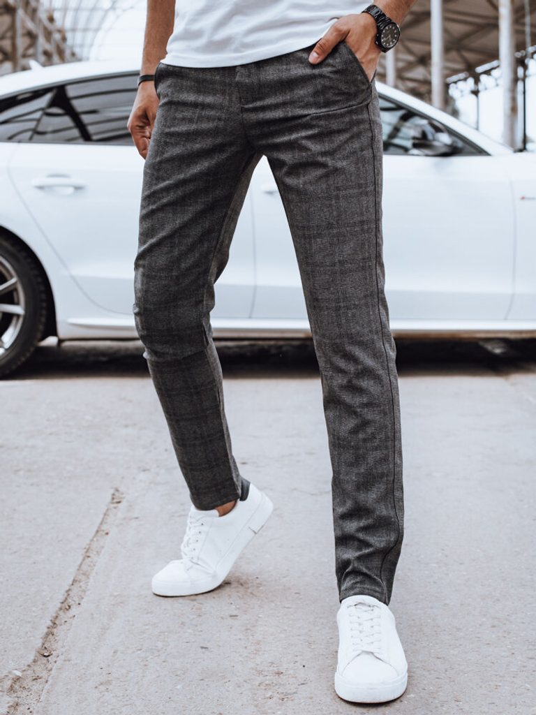 férfi szövet chinos tapintásra kellemes anyagból készült gombos és cipzáros rögzítés divatos kockás minta két elülső ferde zsebbel két zseb hátul Anyaga: 70% viszkóz, 27% poliészter, 3% lycra