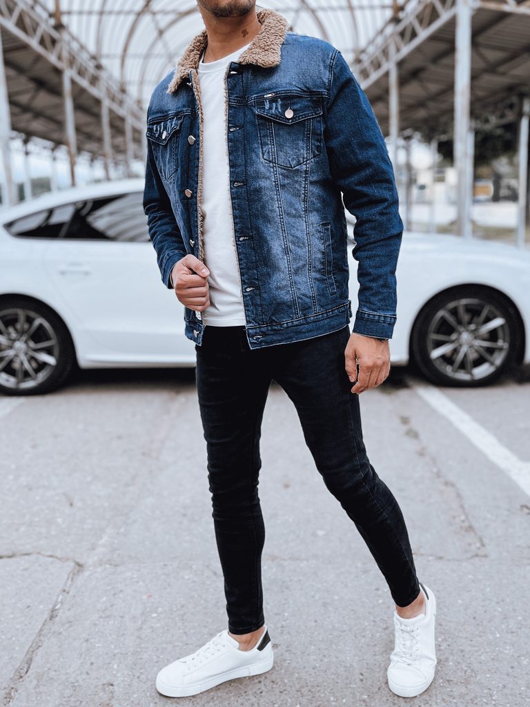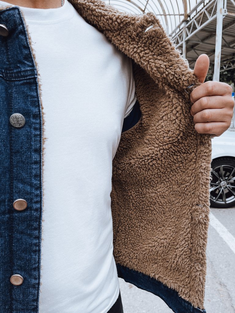 férfi farmer dzseki gombos rögzítés szőrmével bélelve két mellzseb két oldalzseb az ujjak gombokkal vannak rögzítve Anyaga: 56,5% pamut, 37% poliészter, 5% viszkóz, 1,5% elasztán