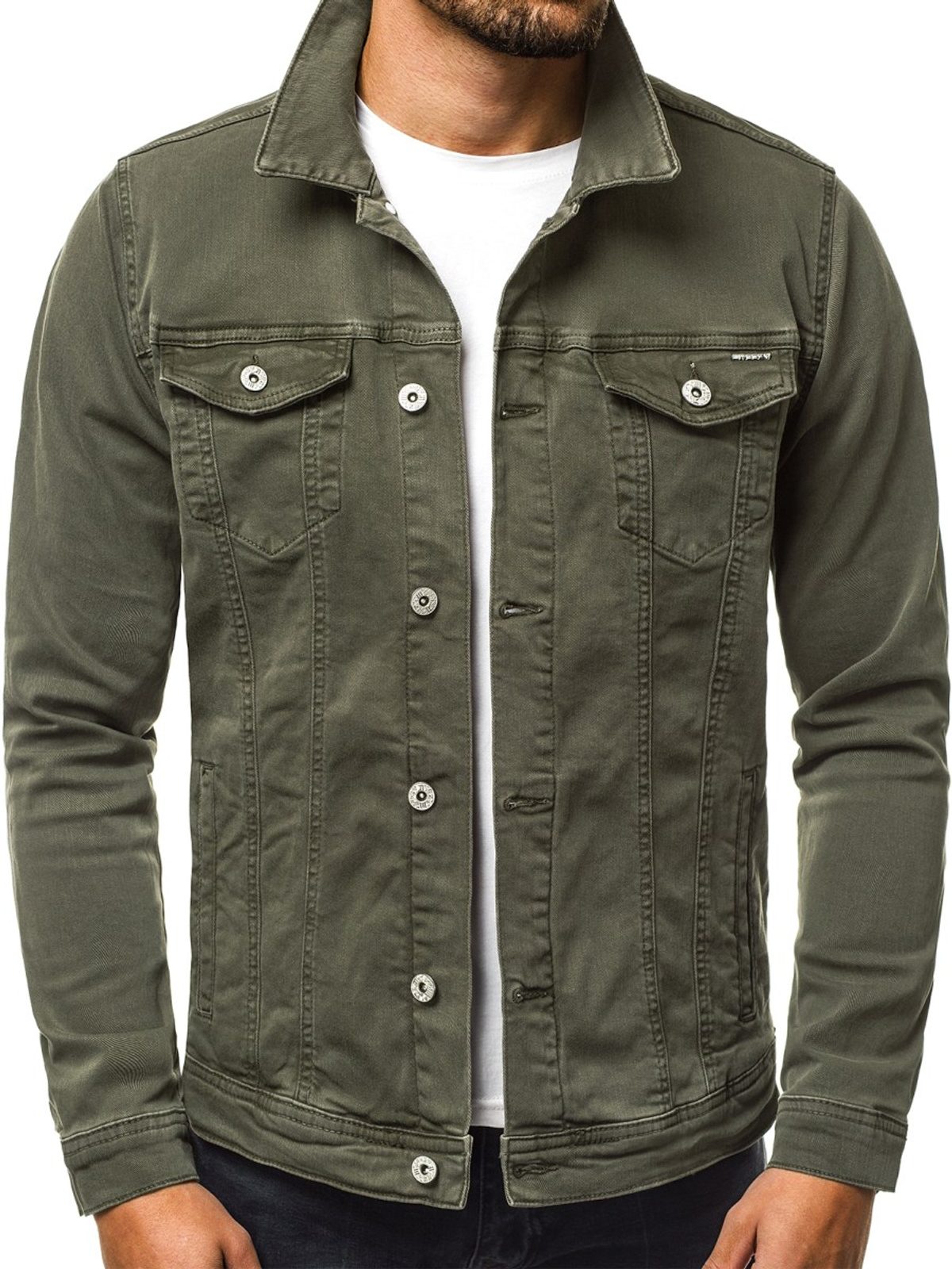 Modern farmerkabát. Sötét zöld színben. Kényelmes viselet a pamut anyagnak köszönehtően. Két zsebefedős mell zsebbel ellátva. A koptatott hatás még mondernebbé varázsolja. Gombos mandzsettával. Tökéletes hétköznapi viselet. Gombos rögzítéssel.