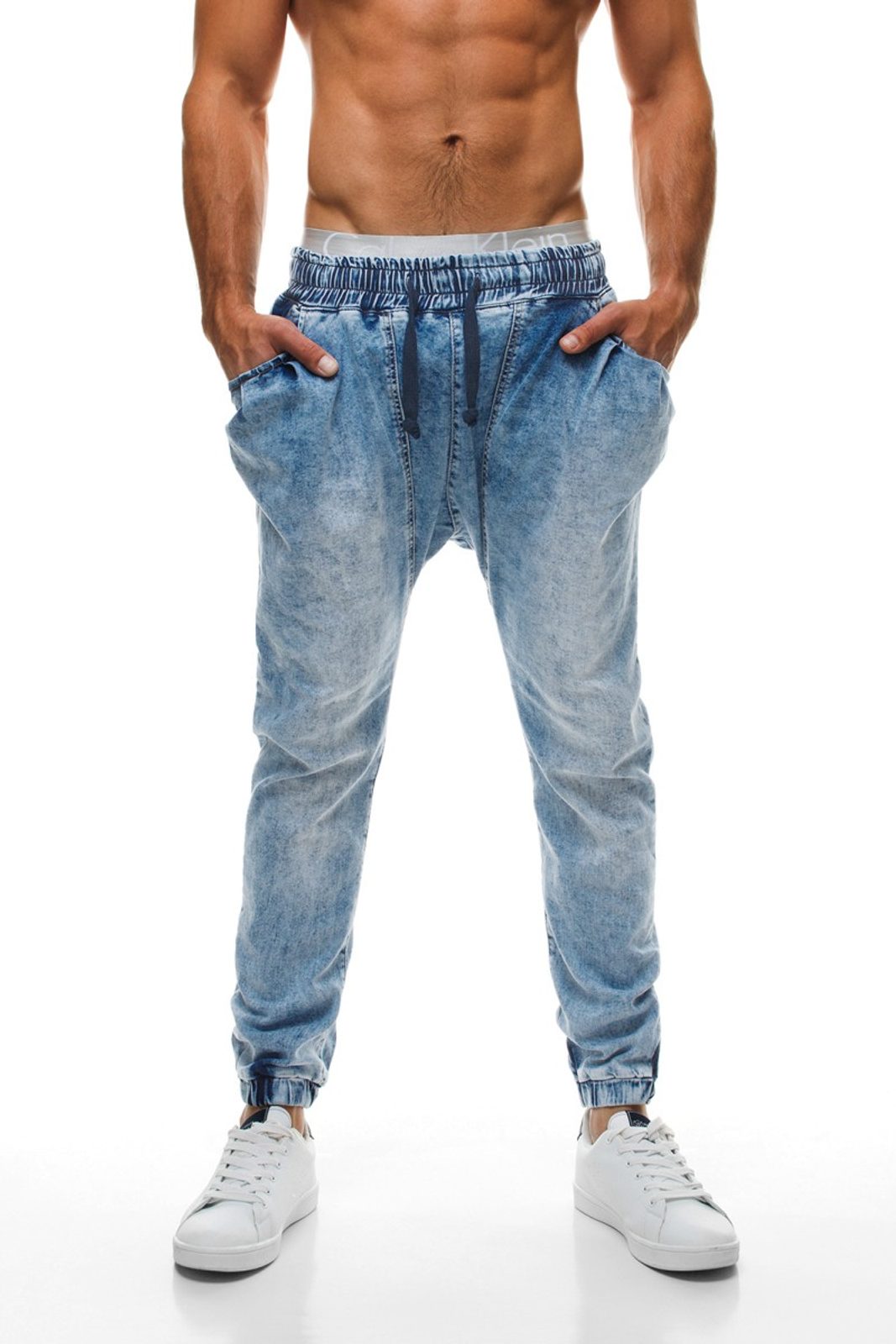 Kényelmes ülepes farmernadrág, mindennapi viseletre alkalmas. Minőségi eldolgozással, mely komfortérzetet nyújt viselőjének. Mosott és koptatott hatással. Gumis derékpánt, valamint a lábszár alja is gumis szegéllyel ellátva. Kényelmes fazon, olsalsó zsebbekkel.