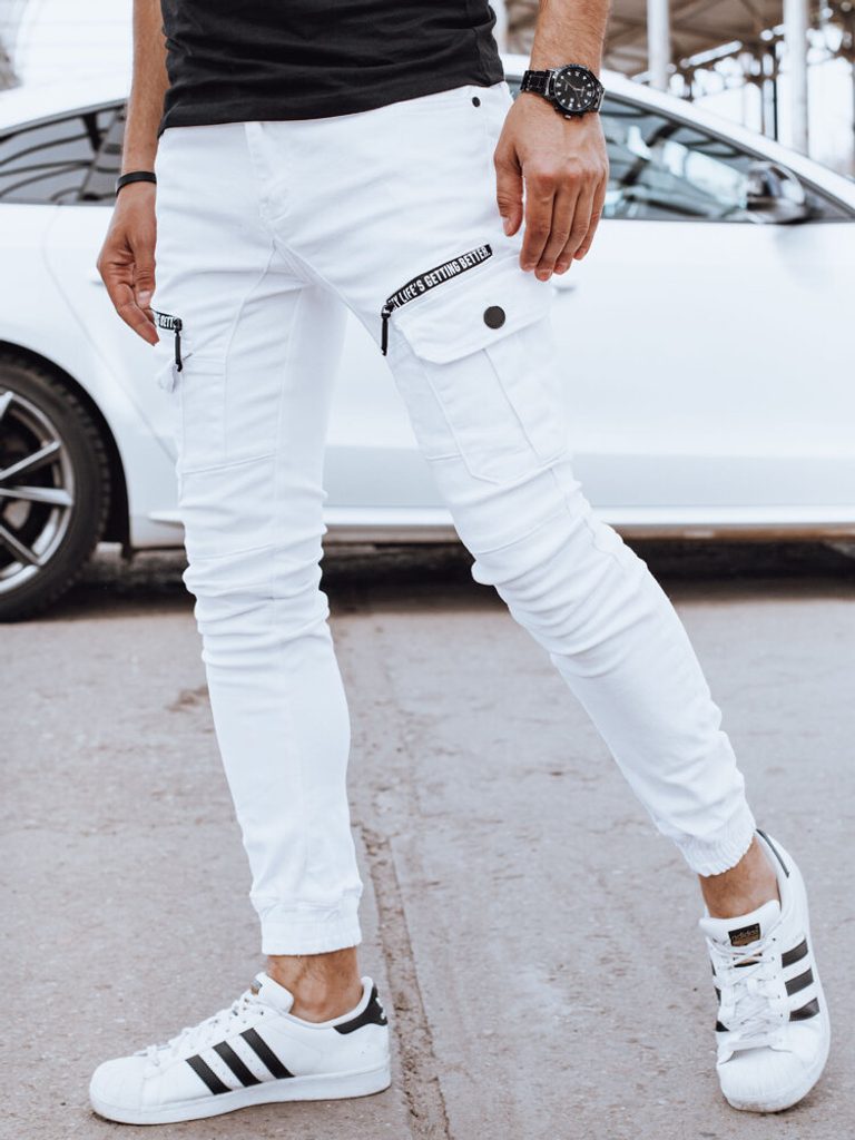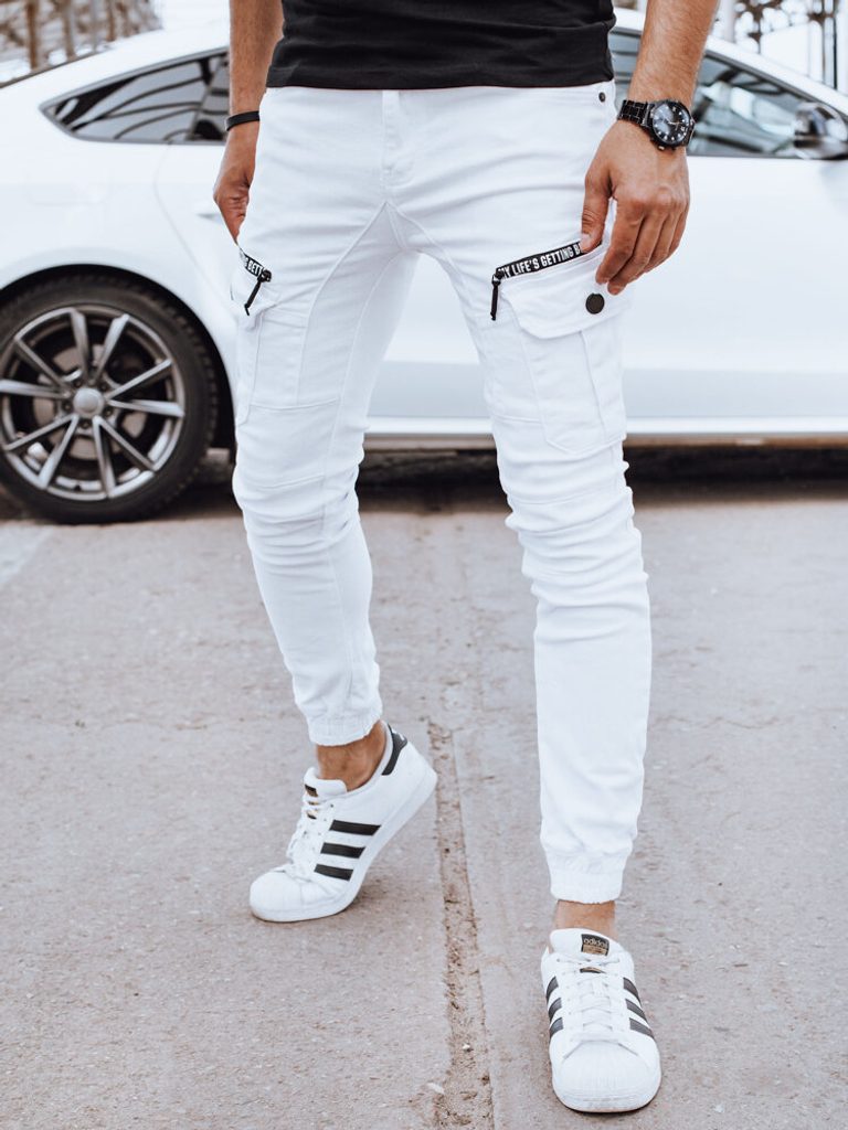 nagyszerű cargo farmernadrág cipzáros rögzítés szűkített slim fit szabású, divatos varrással három elülső zseb két oldalzseb két hátsó zseb ideális mindennapi viselethez Anyaga: 98% pamut, 2% elasztán