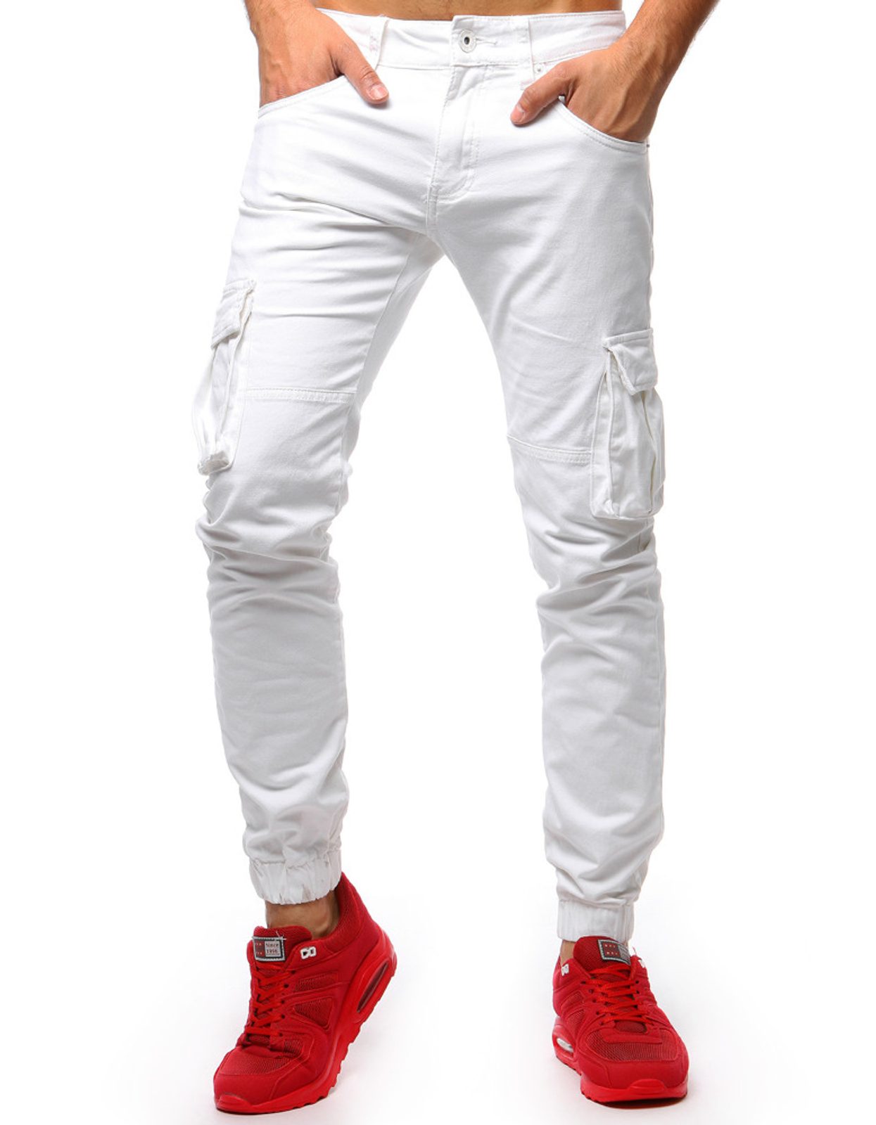 Férfi különlege fehér farmernadrág jogger stílusban. Klasszikus derékpánt. A lábszár gumírozott. A lábszár zsebekel ellátva. Felejthetetlen megjelnést biztosít viselőjének. Hordható a mindennapokon, sportos programokon és hétvégi kikapcsolódások alkalmával is.
