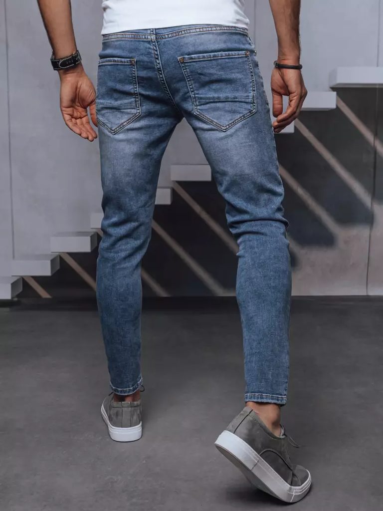 gombos rögzítés három elülső zseb két hátsó zseb enyhén elkeskenyedő vágás Anyaga: 98% pamut, 2% elasztán