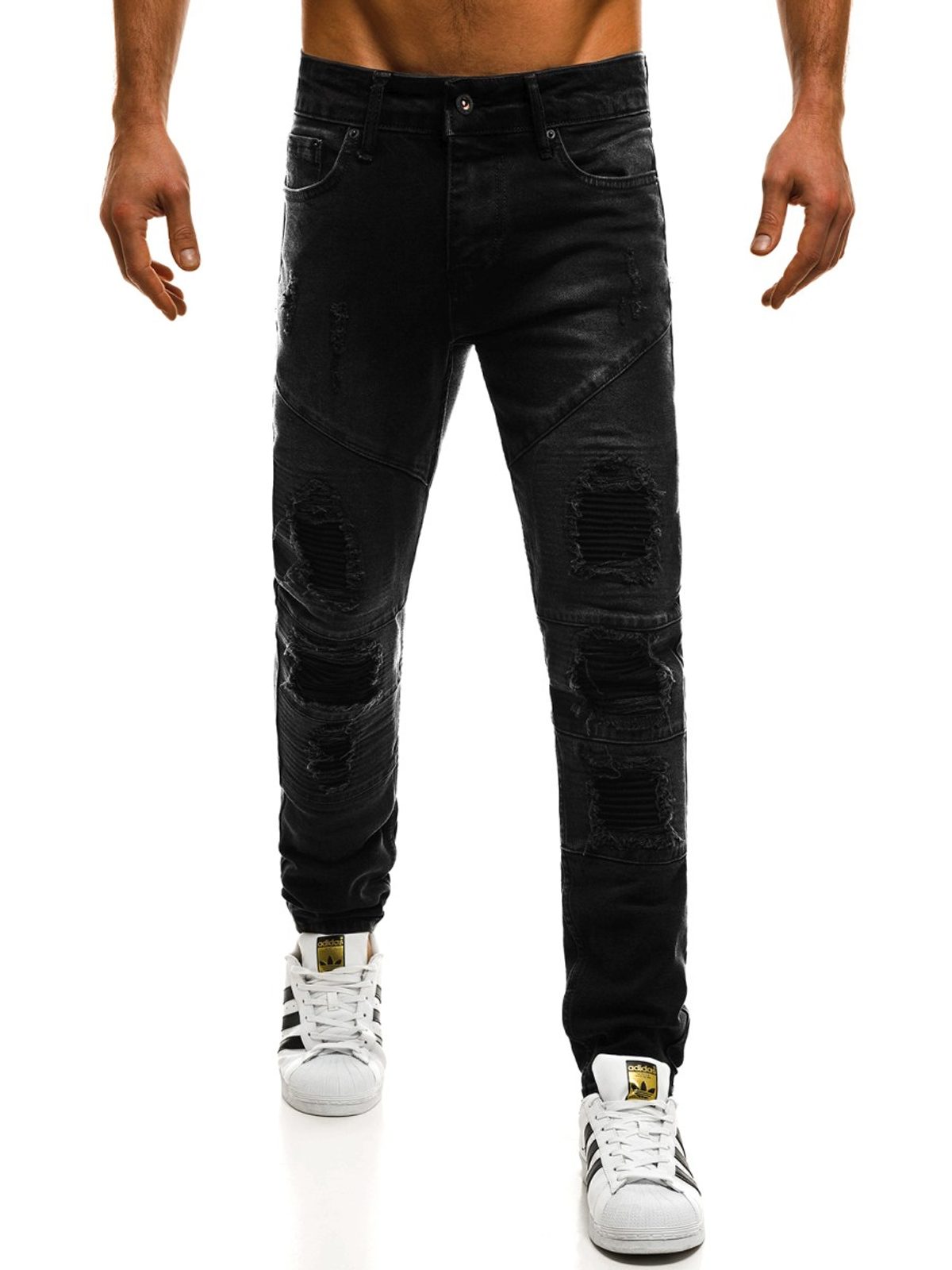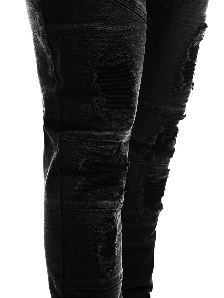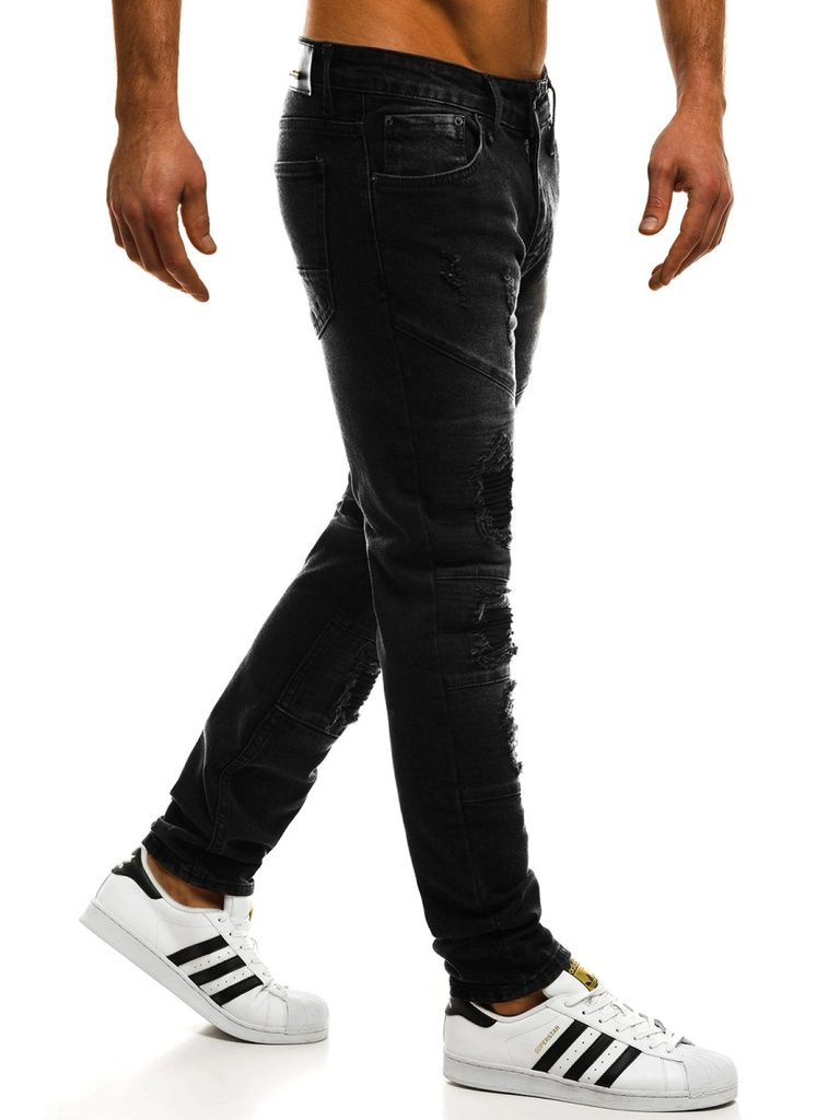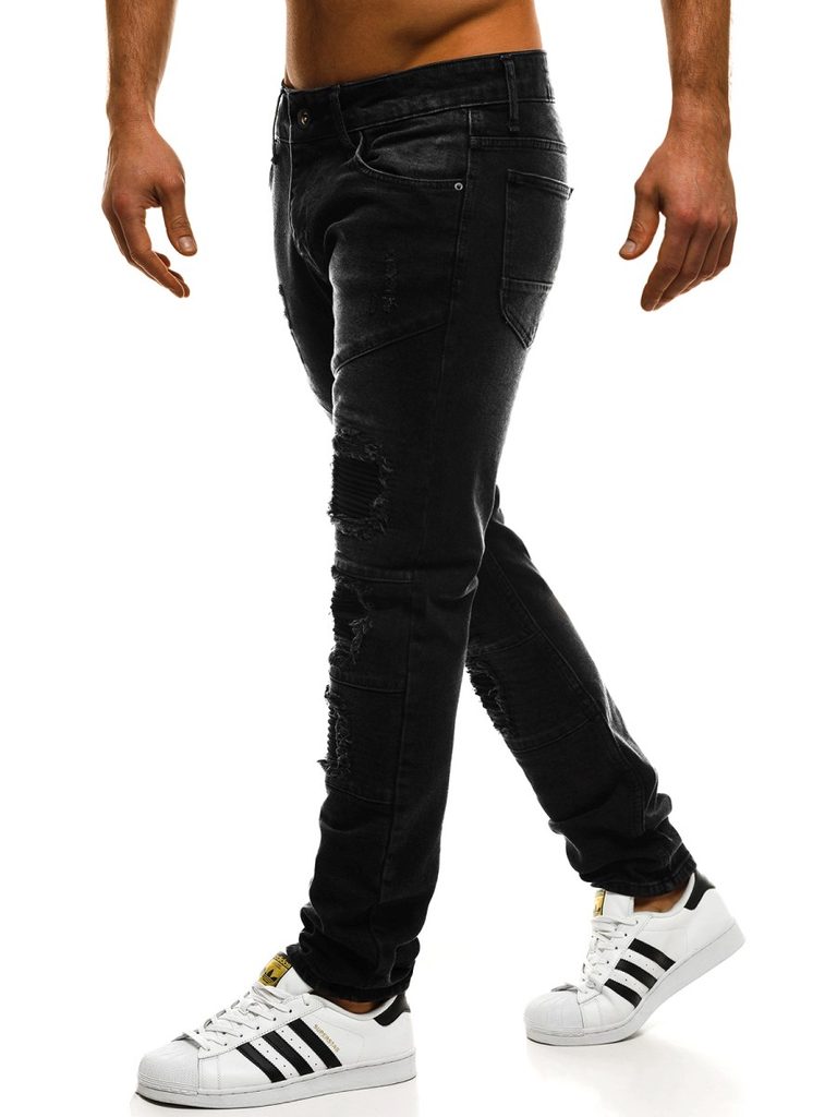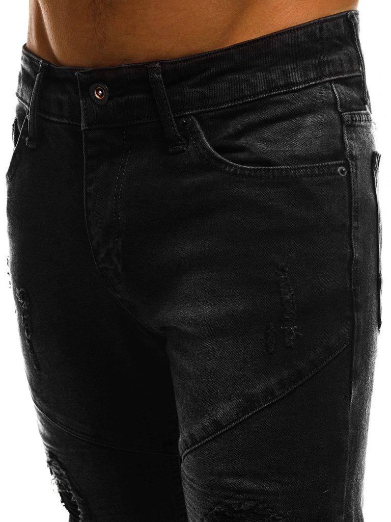 Fekete férfi farmer a CATCH márka terméke. Kiváló minőségű, puha, kényelmes viseletet biztosító farmer anyagból készült. Normál derékmagasságú, szűk nadrágszárakkal. Szakadt elemekkel. Derékban integrált öv, övbújtatók, klasszikus zsebkialakítás. Gombos és cipzáras rögzítés.