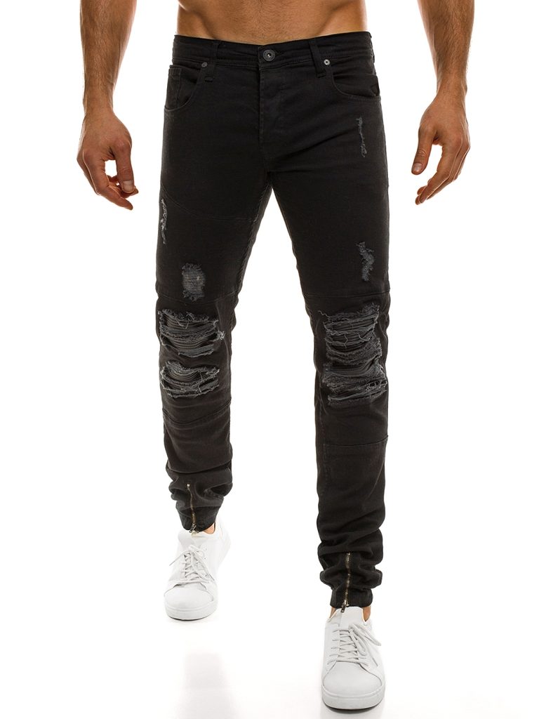 Ez egy szűkített szárú, kényelmes farmer nadrág a lezsér stílus kedvelőinek. Stílusos fekete színben, koptatott hatású. A térde rojtos, szakadt. A lábszár több helyen tépett elemekkel. Ebben nyugodtan mehetsz buliba, suliba. Egy kényelmes sportcipővel és egy trendi pólóvala kombinálhatod. Négy zsebbel rendelkezik.