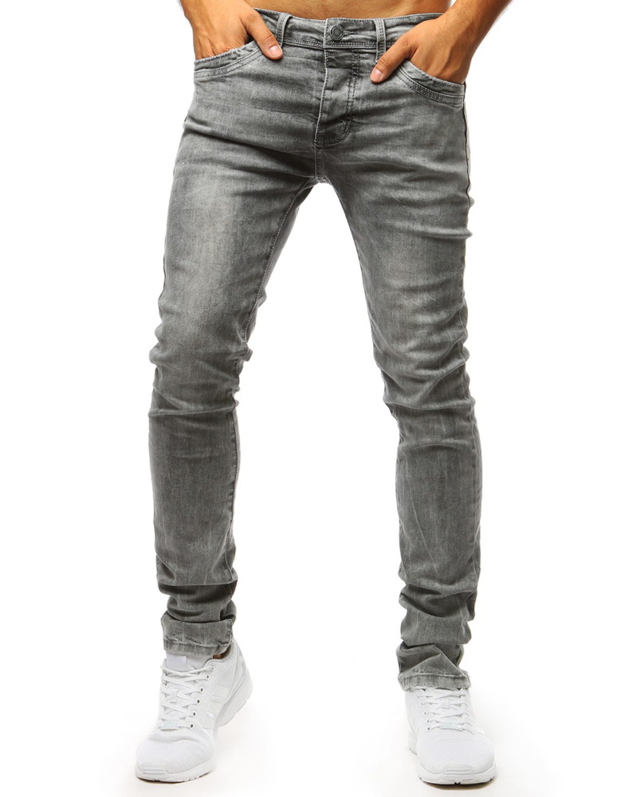Szürke szűkített farmer. Rugalmas, puha anyagból készült. A lábszár enyhén tépett elemekkel. Normál derékmagasságú fazon, lefelé erősen szűkűlő, teljesen a testhez simuló lábszárakkal. Derékban integrált öv, övbújtatók, klasszikus zsebkialakítás. Gombos és cipzáras rögzítés. Ezzel a modellel nem nyúlhatsz mellé, stílusos és férfias lehetsz vele, minden időben.