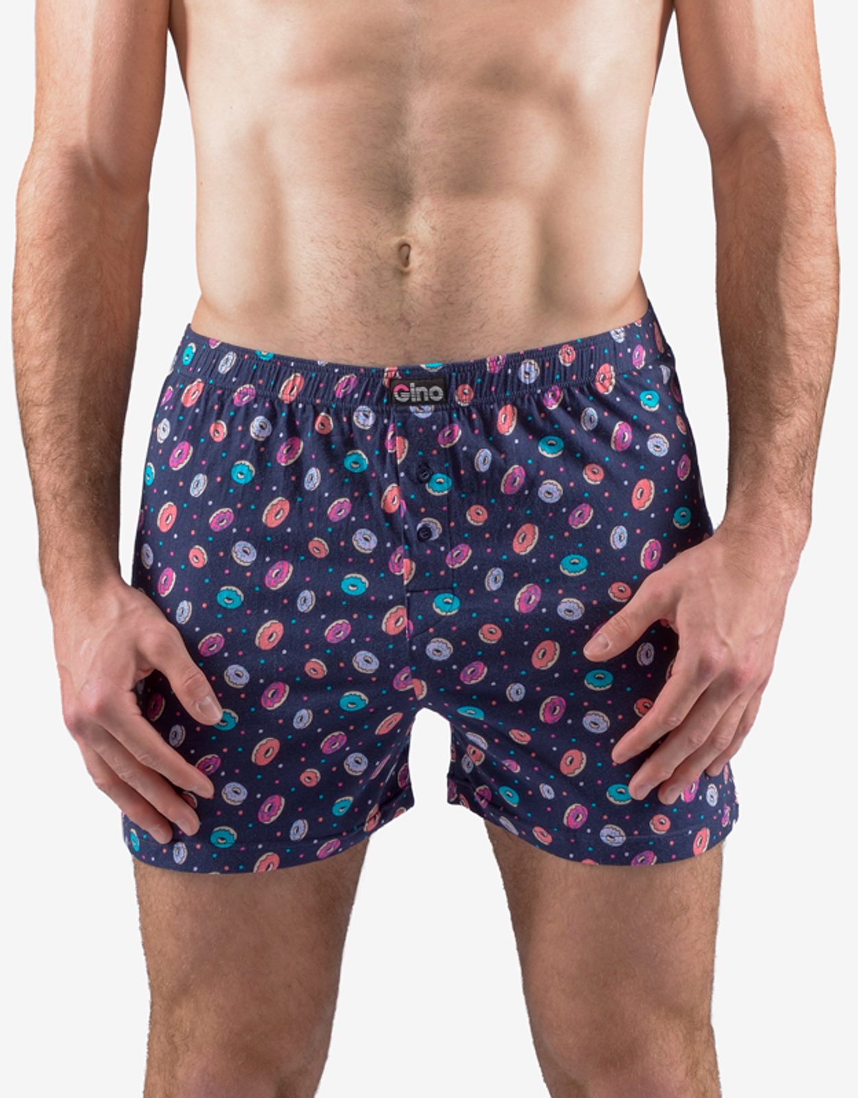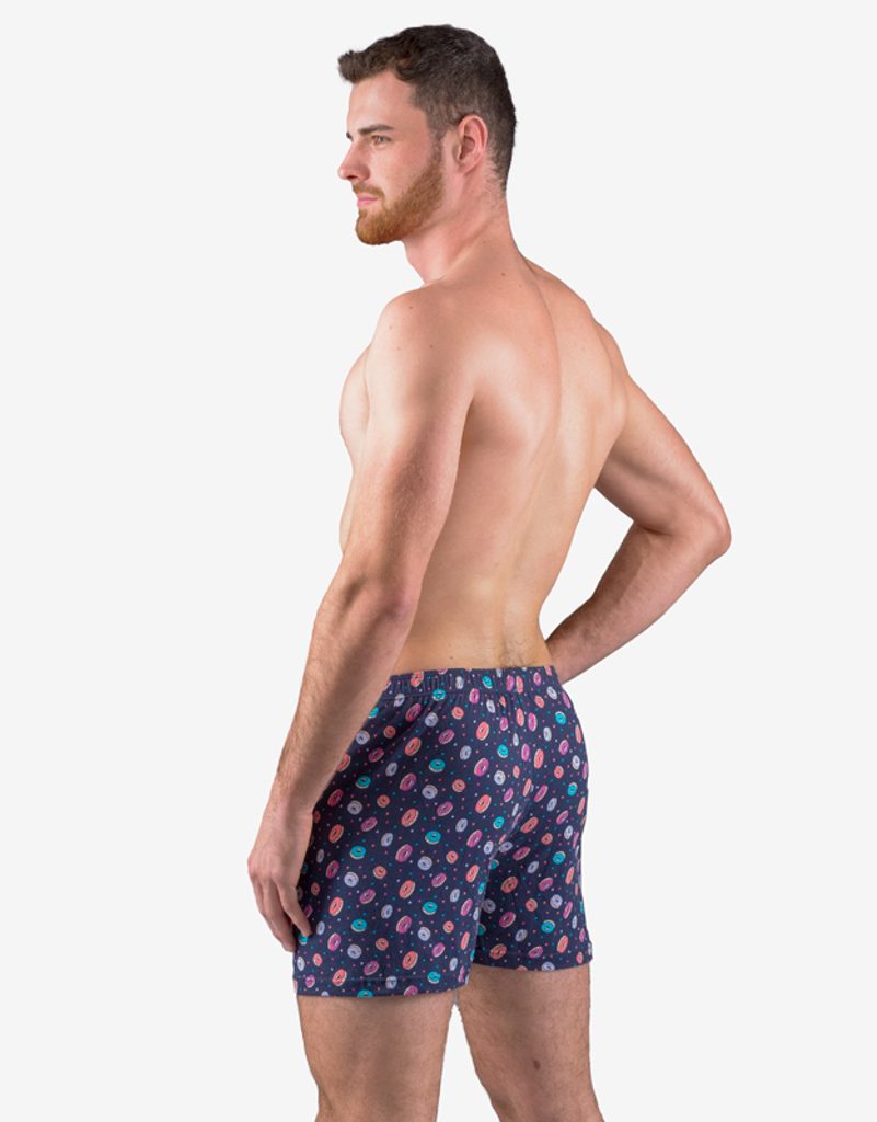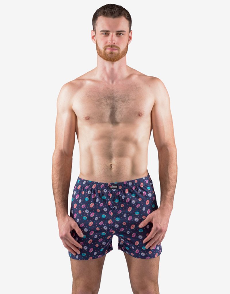 A pamut rövidnadrág elöl 2 gombos rögzítéssel rendelkezik. Tartalmaz egy nyomatot, amely a modell teljes felületén