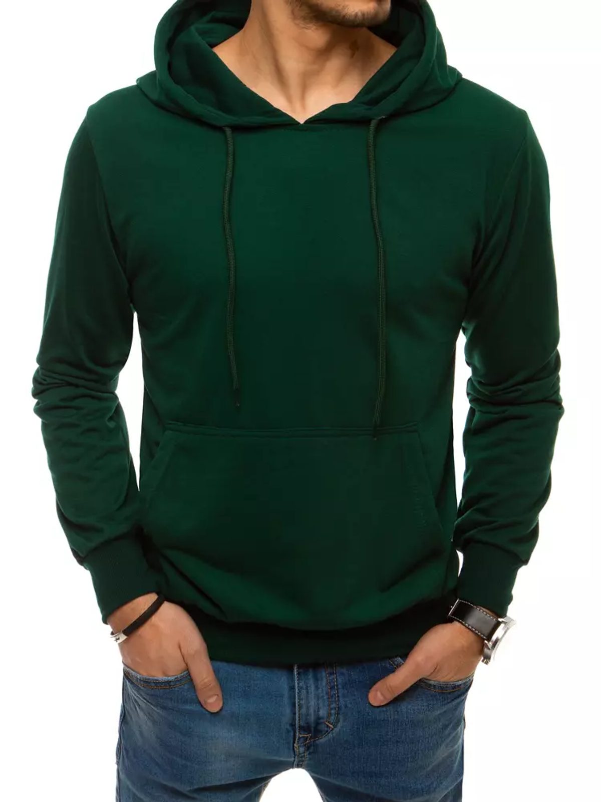Sima kapucnis pulóver zöld színben. Minőségi anyagból, mely komfortérzetet biztosít viselőjének. Mindennapi viseletre alkalmas. Kenguru zsebbel ellátva, kapusnis fazon. Zsinórbehúzással. A derékrésze és az allja rugalamas patenttal. Tökéletes eldolgozással.