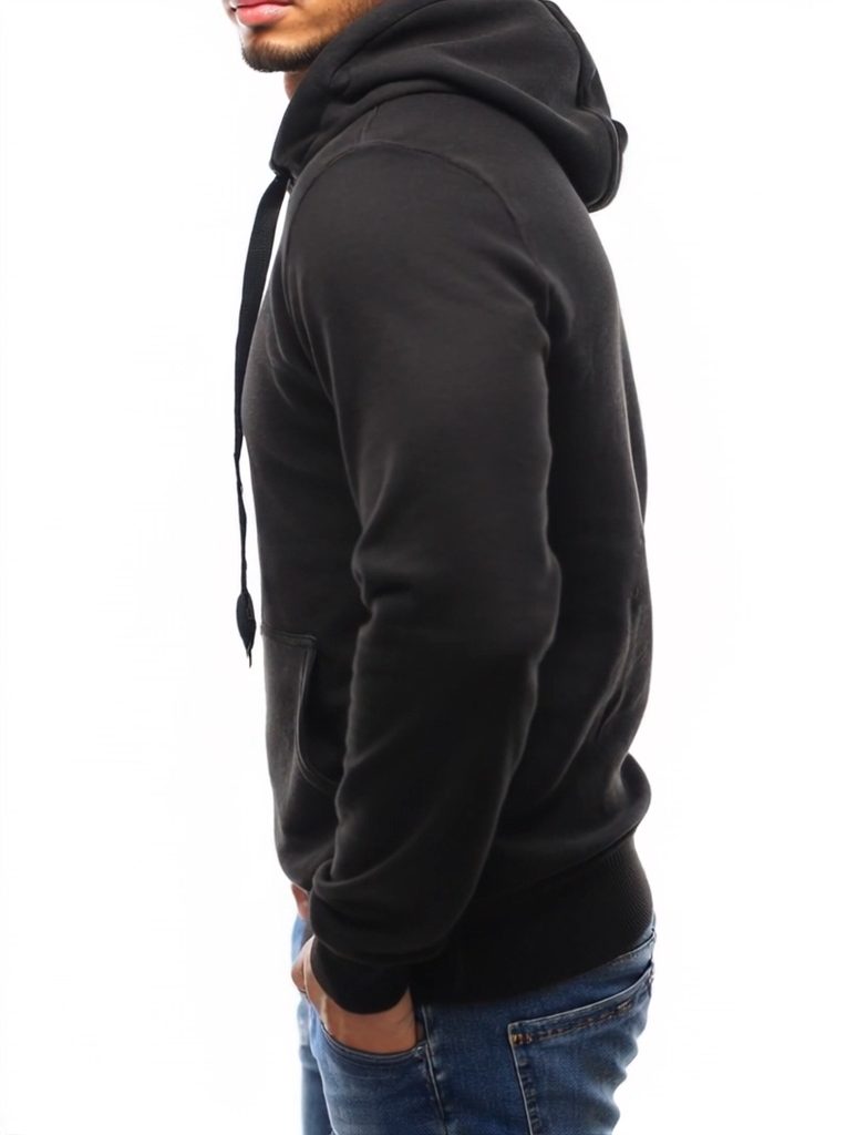 Sima kapucnis pulóver, fekete színben. Minőségi anyagból, mely komfortérzetet biztosít viselőjének. Mindennapi viseletre alkalmas. Kenguru zsebbel ellátva, kapusnis fazon. Zsinórbehúzással. A derékrésze és az allja rugalamas patenttal. Tökéletes eldolgozással.