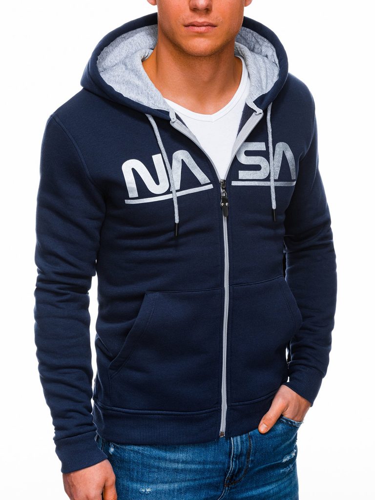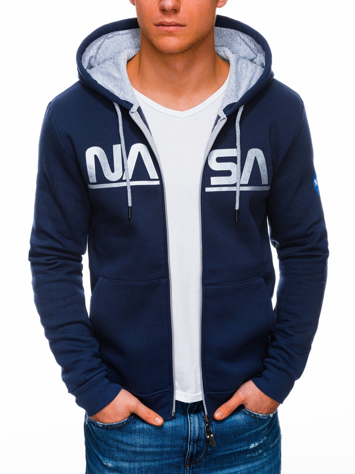 Sötét kék kapucnis pulóver. NASA felirattala a mellkas részeén. Kiváló minőségű, puha, rugalmas anyagból készült. Zsinórbehúzásos kapucnival és formatartó bordás passzékkal. Két oldalsó zsebbel. Puha, kényelmes pamut minőségben. Mindennapi viseletre alkalmas.