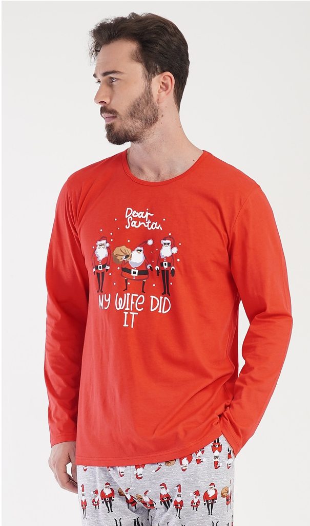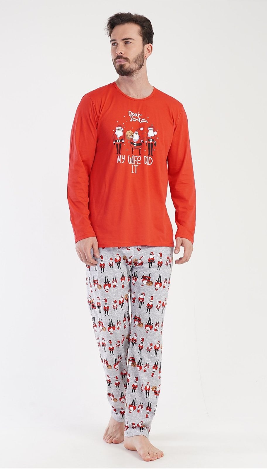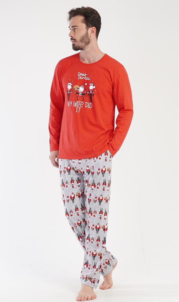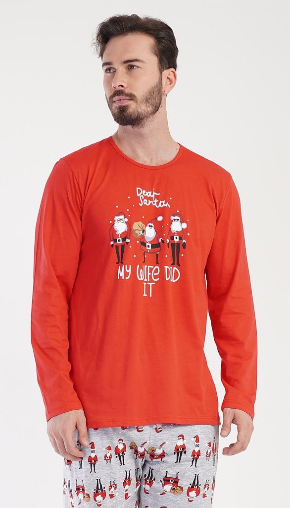 A kényelmes férfi pizsama egy hosszú ujjú pólóból és bő, hosszú nadrágból áll.