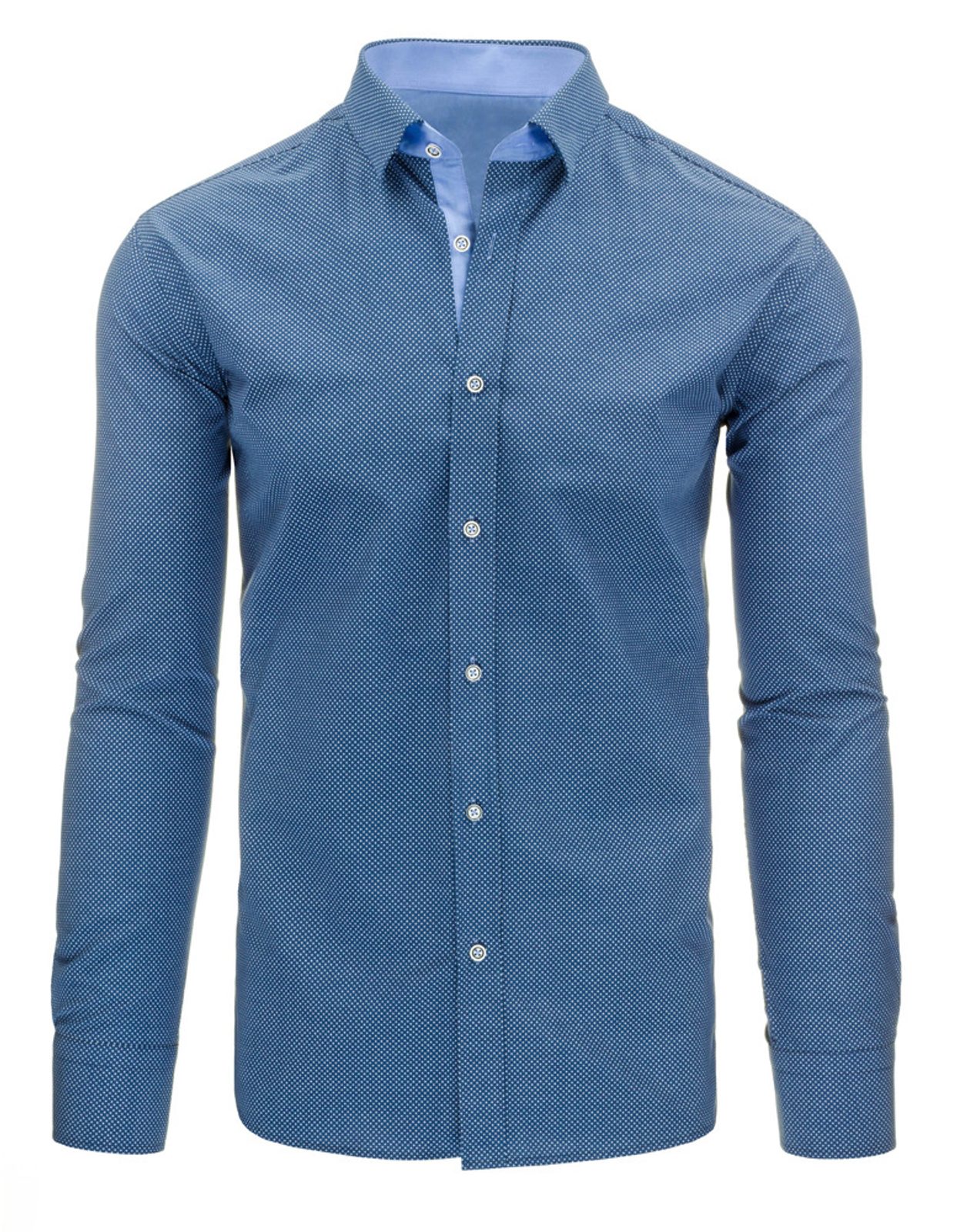 Egyedi elegáns kék ing. Minőségi anyagból, mely komfortérzetet nyújt viselőjének.Slim-fit fazon, mely kiemeli az alakot. A gomboláspánt és a gellér belső része halvány kék színben. Kék alapon, apró mintával.