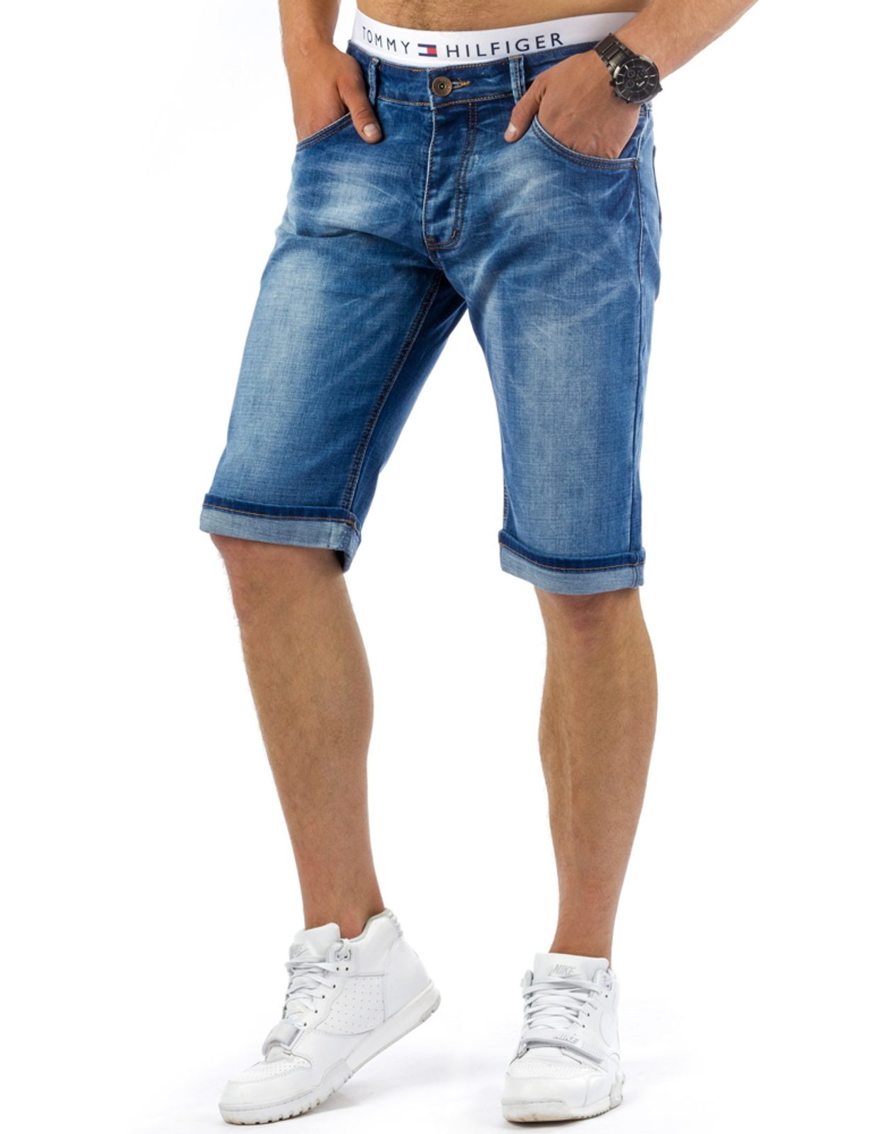 Stílusos férfi farmer rövid nadrág, enyhén koptatott hatású. Klasszikus cipzárral és gobbal ellátva. Elől két zseb, és két farzsebbel ellátva. Öv vezető pántok.