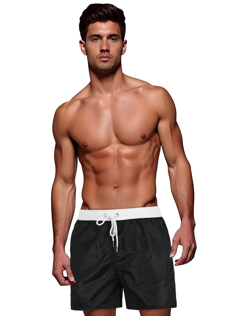 Következő variációk Divatos fekete férfi fürdőruha szürke övvel