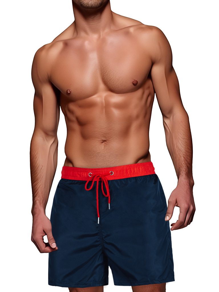 Következő variációk Divatos gránátvörös férfi fürdőruha kék övvel