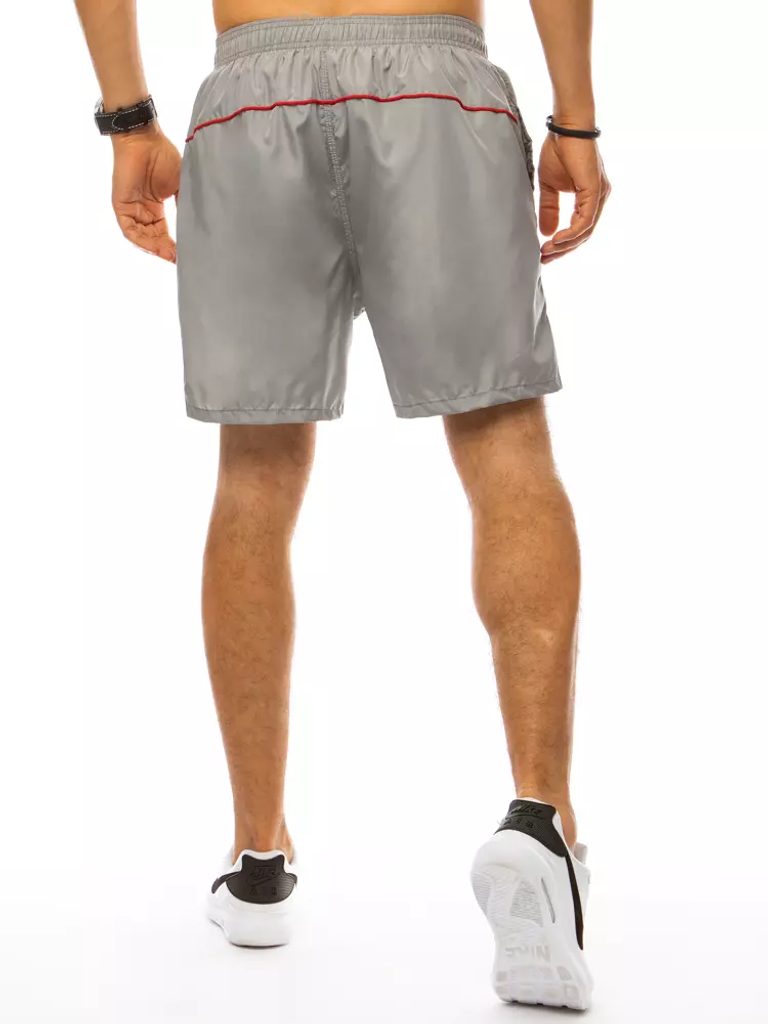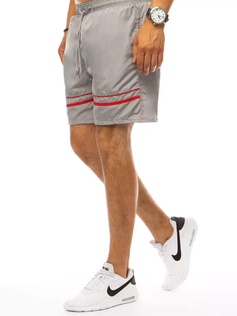 Divatos szürke fürdősort. piros csíkos a comb részen. Lezser fazon és laza megjelenés. Külső zsinór és szegélyezés a derékpánton. Oldalzsebek és belső nadrág teszik praktikussá a darabot. Két oldalśo benyulós zsebbel. Farzseb tépőzáras.