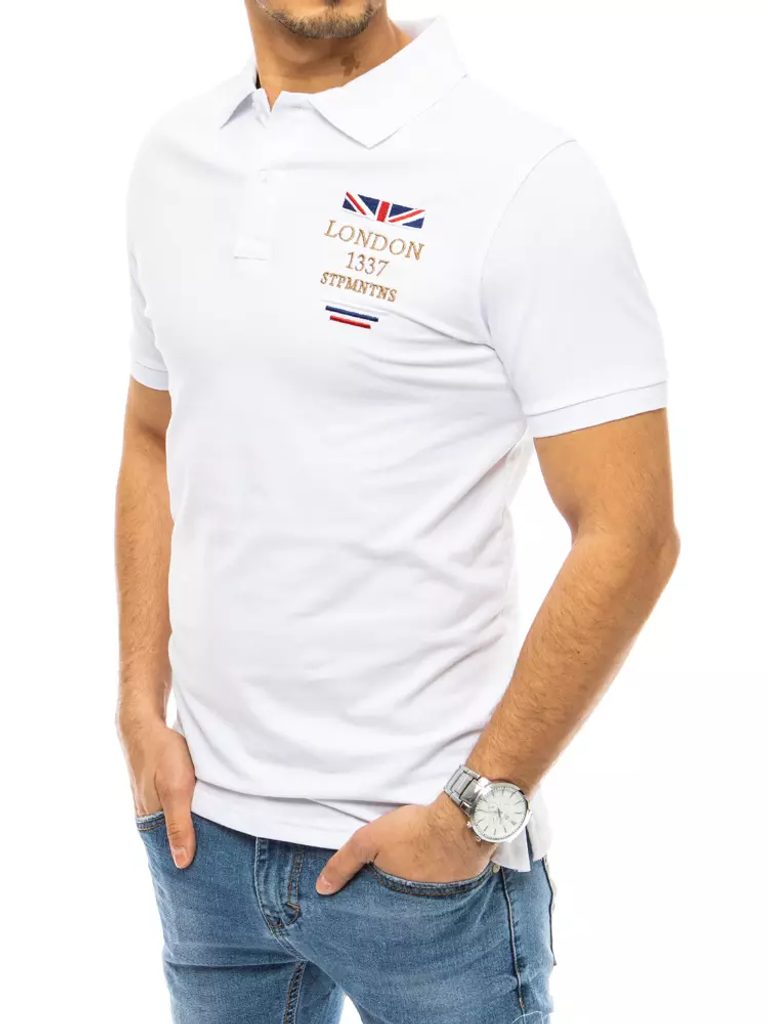 Stílusos fehér galléros póló. Mellkas részén hímzett felirattal és logóval. Egyenes szabás oldalhasítékokkal. Kényelmes rövid ujjú ing meleg napokon viselt sportos összeállításokhoz. Érdekes lenyomattal az elején.