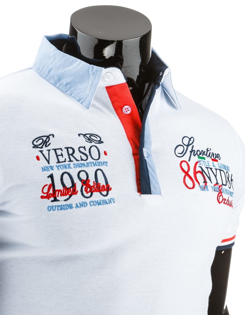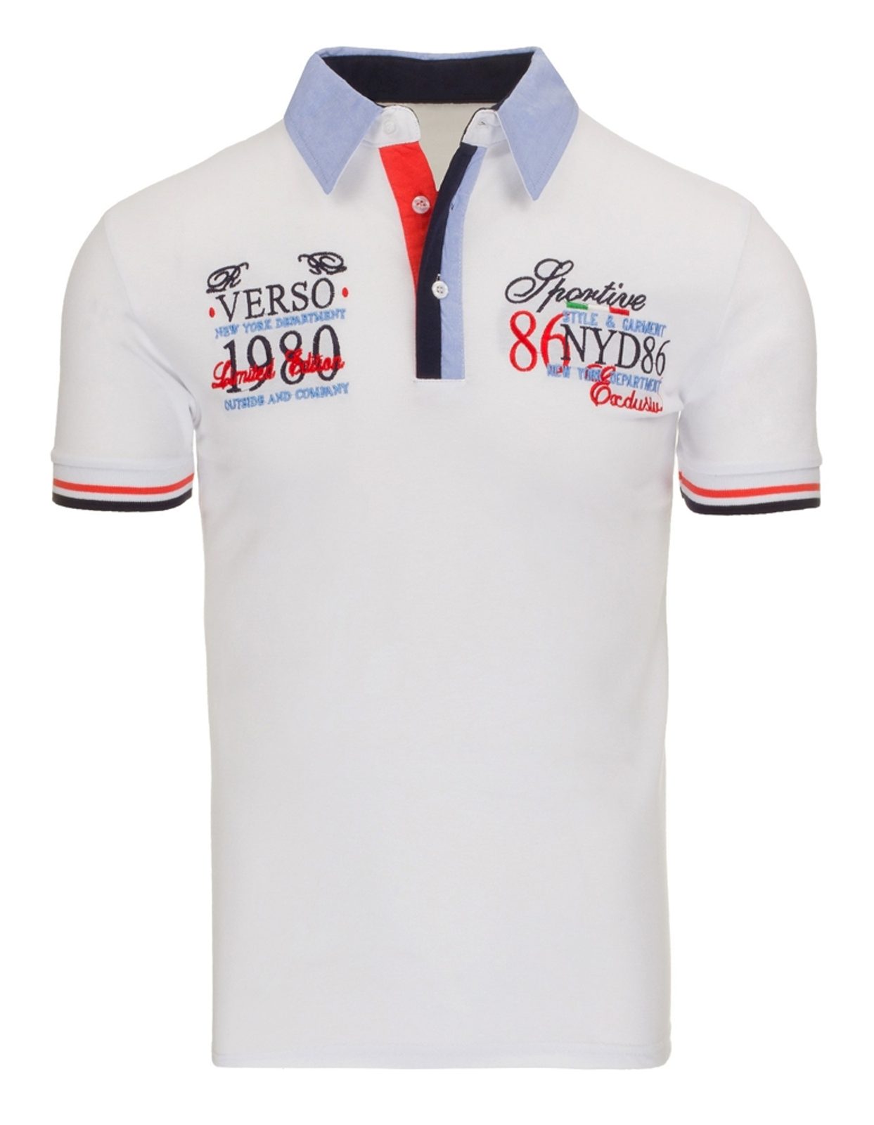Stílusos zöld férfi pólóing, fehér gallérral valamint a gomboláspánt is fehér és az ujjak szegélye. A mellkas részen stílusos hímzett feliratokkkal. A nyakkivágás három gombbal ellátva. nagyon stílusos megjelenést garantál.