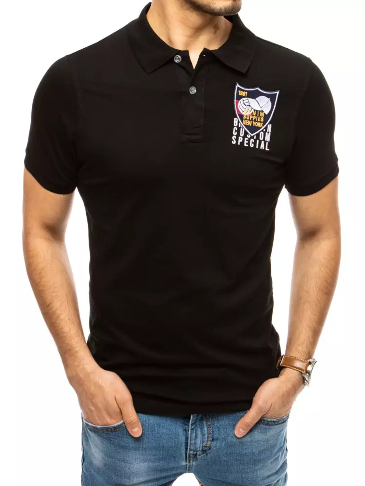 Stílusos fekete galléros póló. Mellkas részeén hímzett logós címke. Egyenes szabás oldalhasítékokkal. Kényelmes rövid ujjú ing meleg napokon viselt sportos összeállításokhoz. Érdekes lenyomattal az elején.