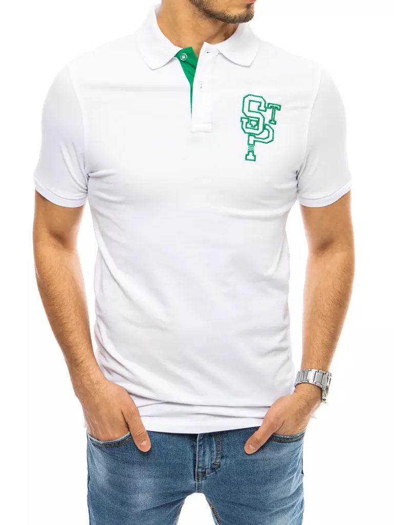 Látványos fehér galléros póló. Mellkas részén hímzett felirat. Kényelmes pamut anyag. Klasszikus kihajtott gallér, rövid gombolás pánt. Jól kombinálható.