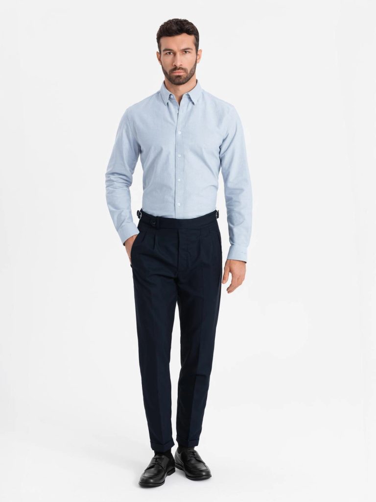 formális szabású férfi ing klasszikus gallér rejtett gombokkal enyhén lekerekített alsó gombos rögzítés állítható ujjak gombokkal kellemes pamutból készült szabályos vágás anyaga: 100% pamut