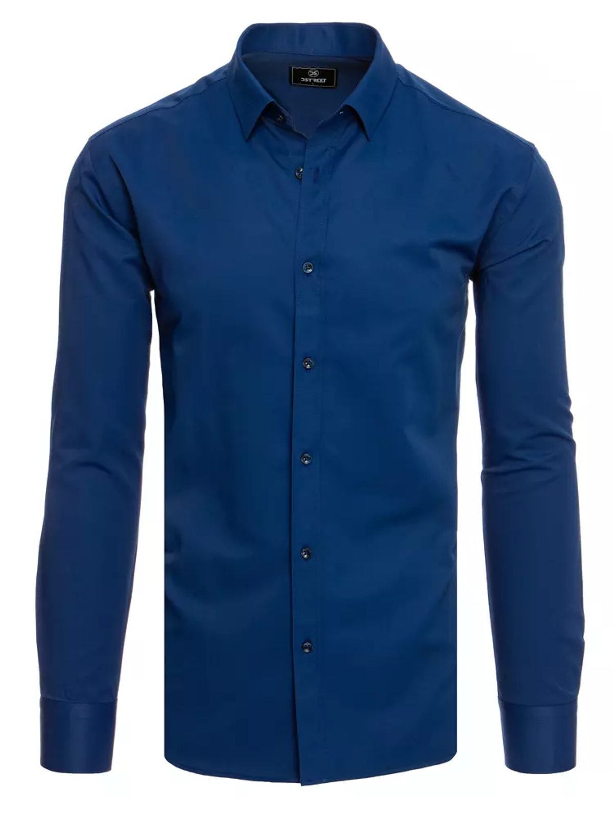 Elegáns sötét kék ing alkalmakra, és a mindennapokra. Hosszú ujjú. Enyhén szűkített derekú, kényelmes, testreszabott sziluettet eredményező fazon. Button-down gallér.
