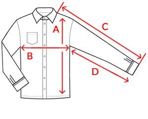 | Méret | Hossz (A) | Mell szélesség (B) | Külső ujjhossz (C) | Belső ujjhossz (D) |