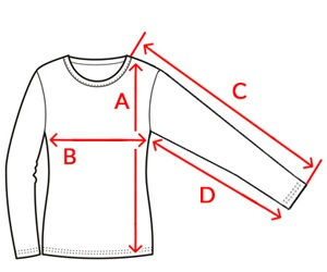 | Méret | Hossz (A) | Mell bőség (B) | Külső ujjhossz (C) | Belső ujjhossz (D) |