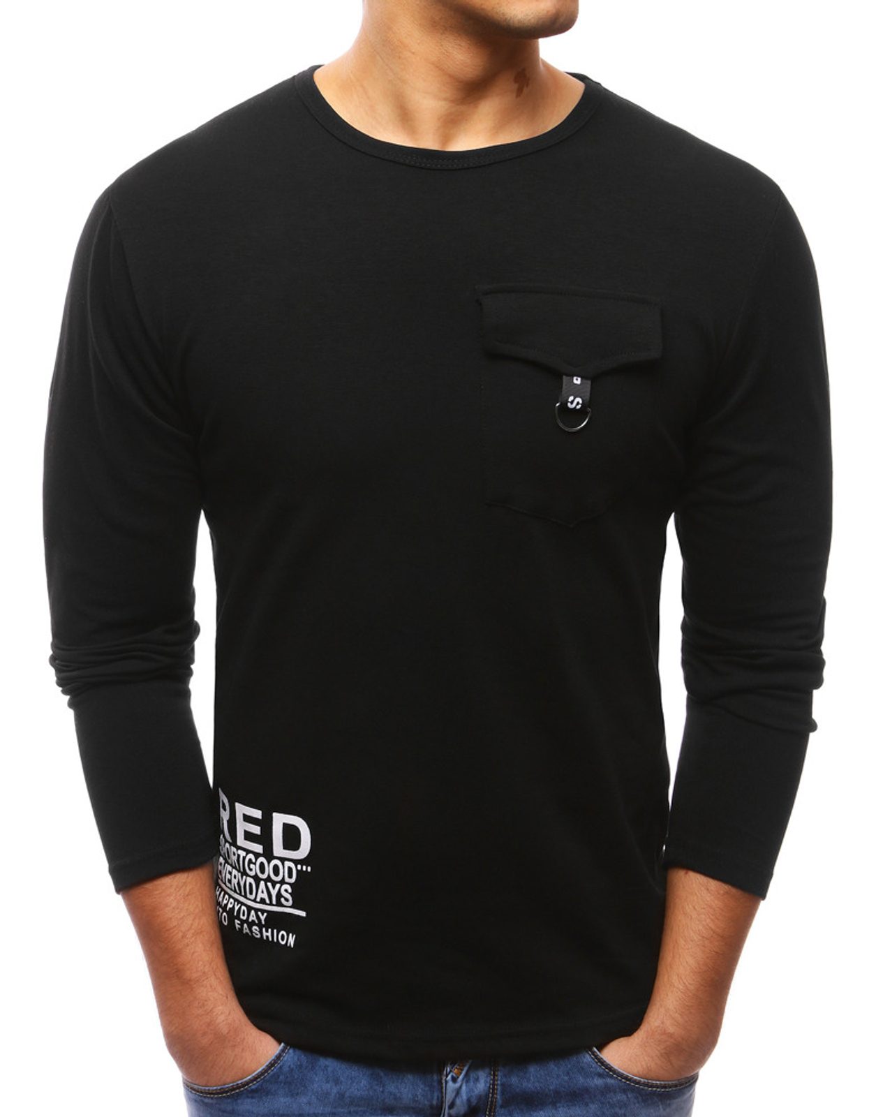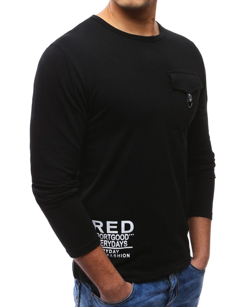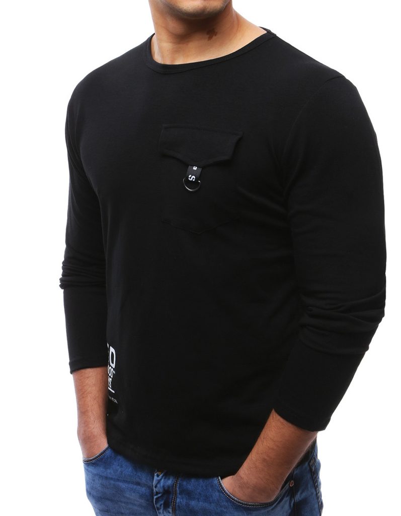 Fekete hosszú ujjúu póló. Klasszikus kerek nyakkivágással. Egy zsebfedős zsebbel a mellkas részen. Kényelmes anyagból, mindennapi viseletre.