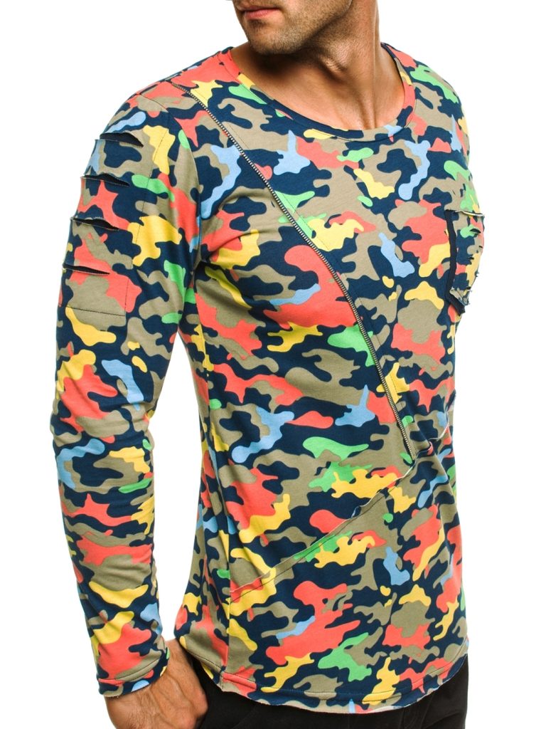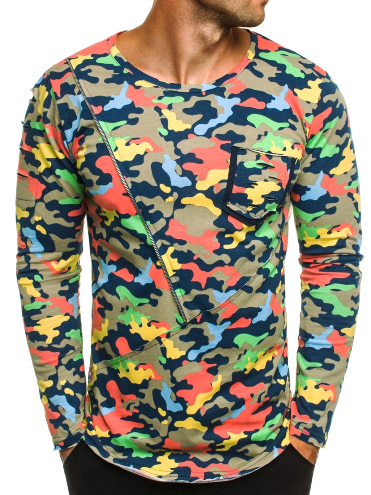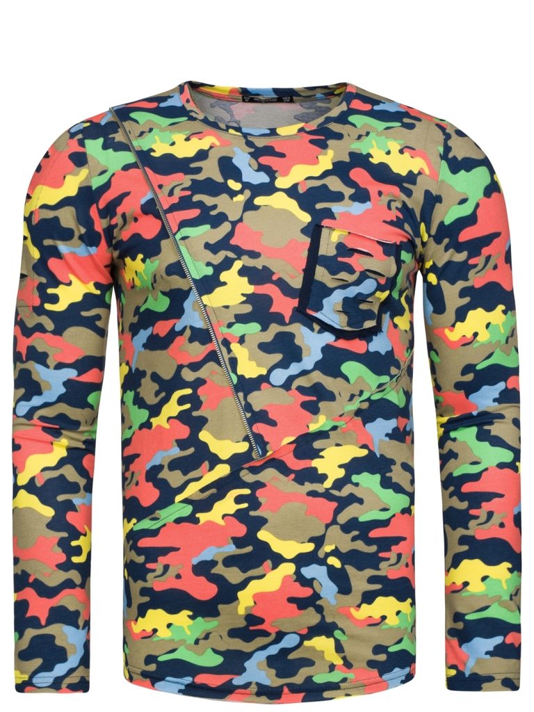 Divatos terepmintás hosszú ujjú férfi póló az ATHLETIC gyártójától. Színes terepmintás. Az eleje különleges osztó varással, valamint cipzárral díszítve. Egy mell zsebbel ellátva. Minőségi anyagból, mely komfortérzetet nyújt viselőjének.
