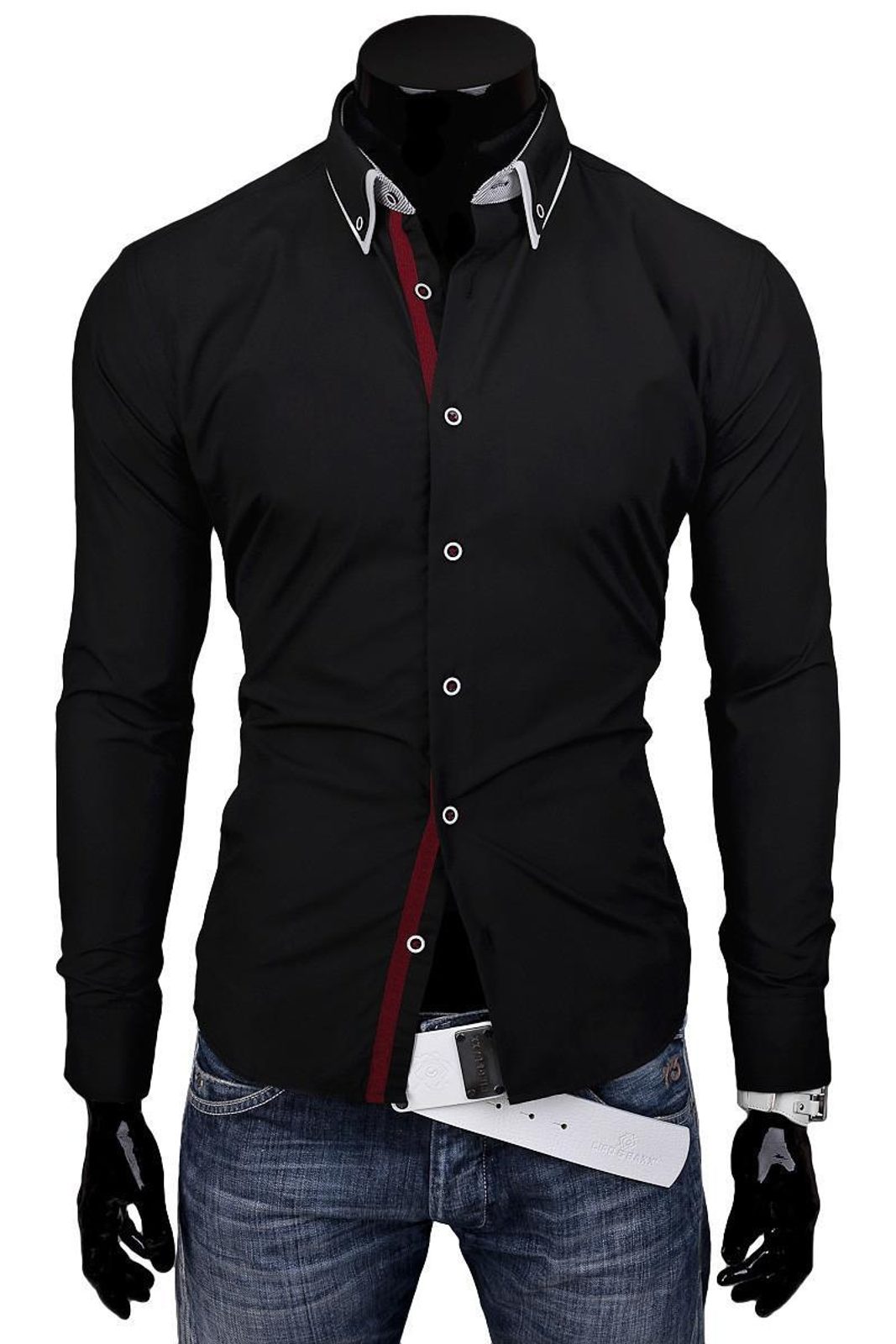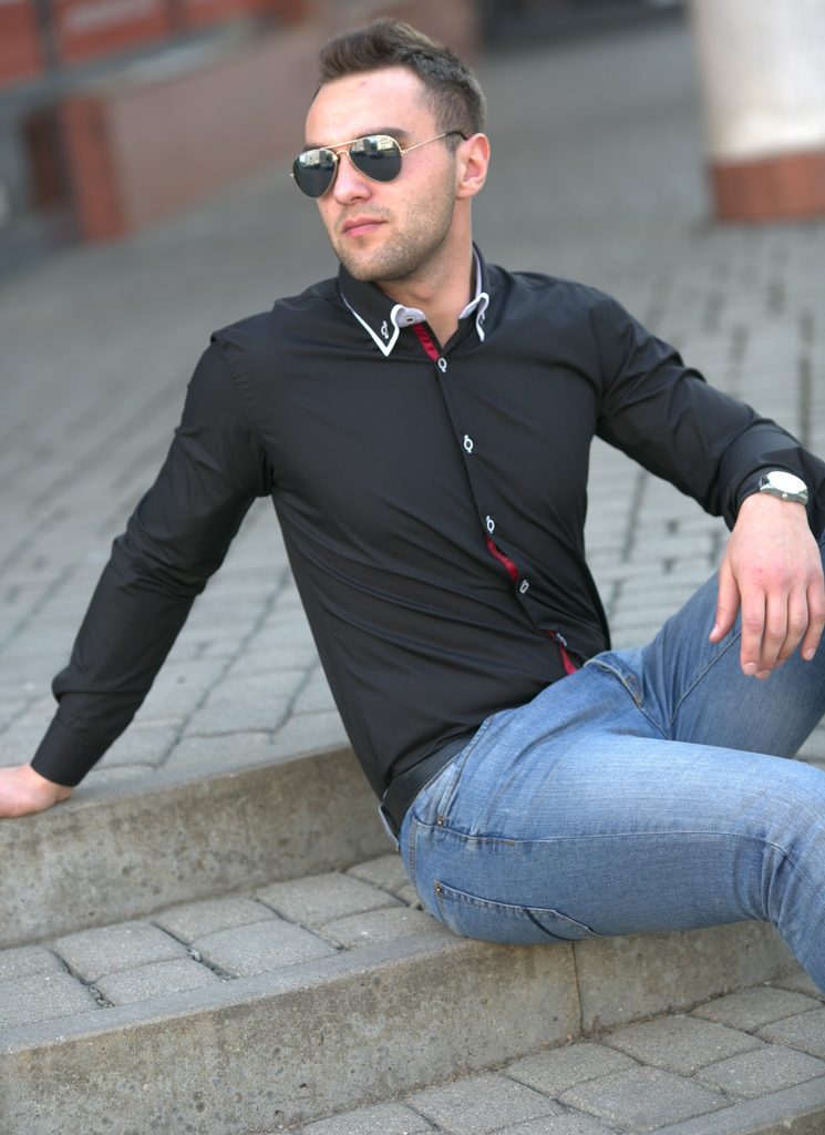 Fekete férfi ing. Tökéletes viselet különböző eseményekre. Kellemes, pamut anyag. Klassikus gombolású, hosszú ujjú ing. A gomboláspánt belső része piros szegéllyel. Kényelmes viselet egész napon át. Trendi darab,amely tökéletes kombinálható elegáns nadrággal, de akár farmerrel is. Ideális viselet ünnepi alkalomra, például színházba, céges partira