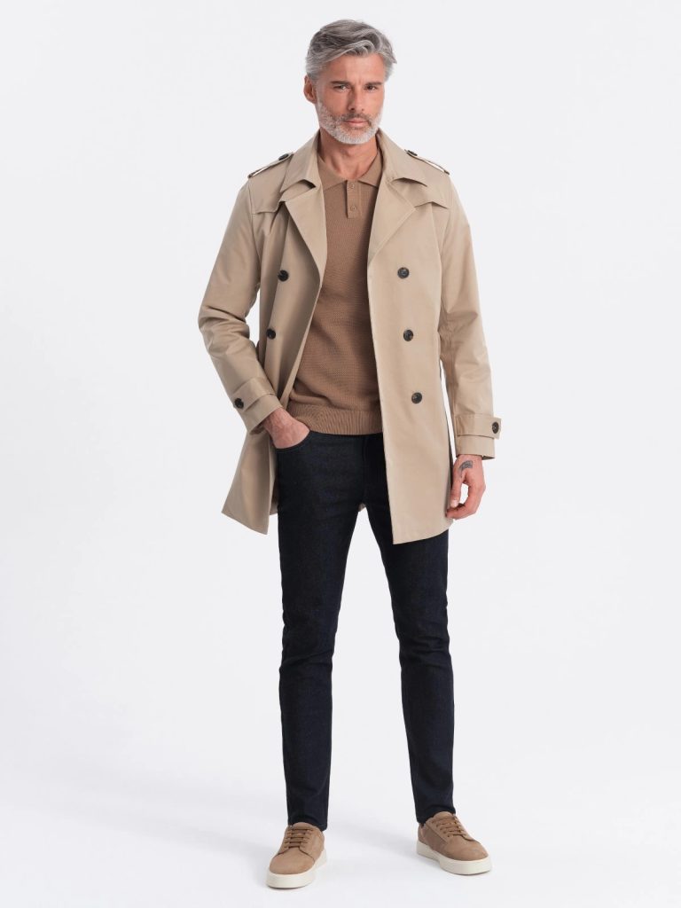 elegáns kabát egyedi kivitelben gombos rögzítés, egysoros két oldalzseb kis belső zseb hátsó hasíték anyaga: 65% pamut; 35% poliészter
