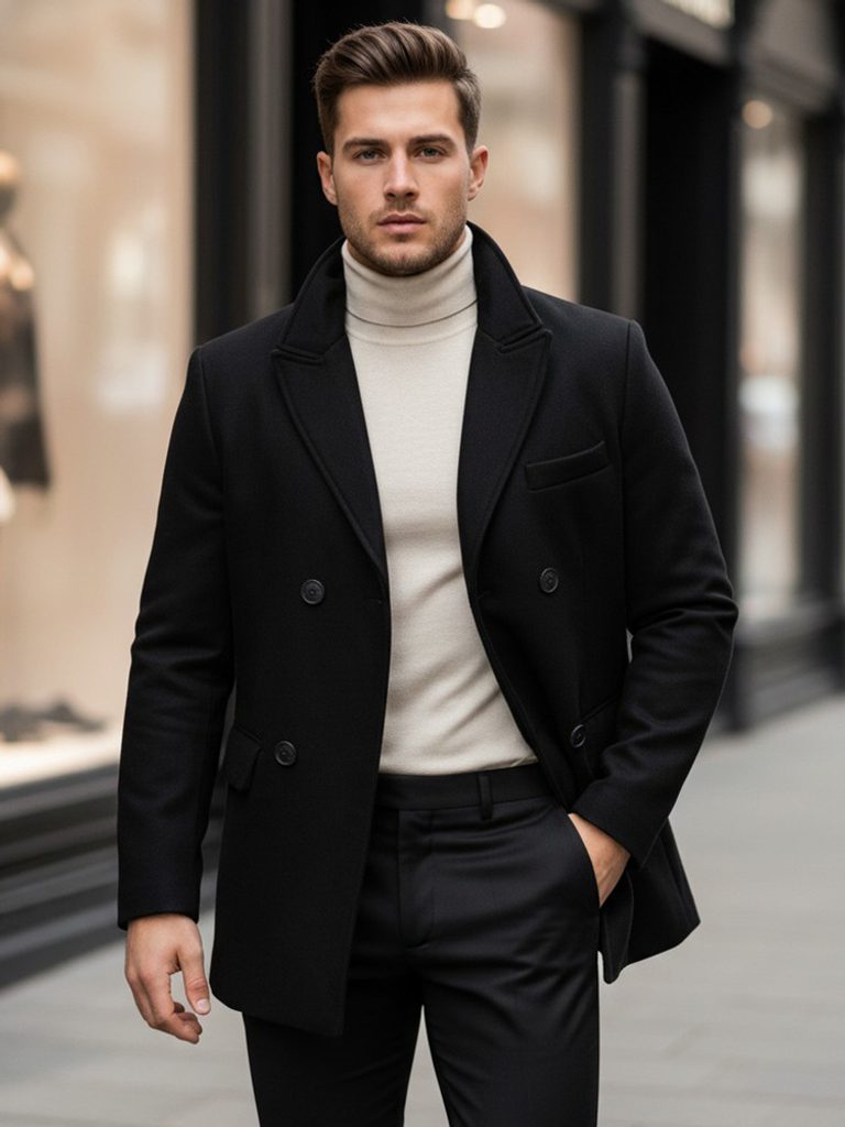 férfi téli kétsoros kabát gombos rögzítés hőszigetelt szőrmeszerű bélés két külső zseb mellzseb egy belső zseb dekoratív gombok az ujjakon. anyaga: 100% poliészter bélés: 100% poliészter