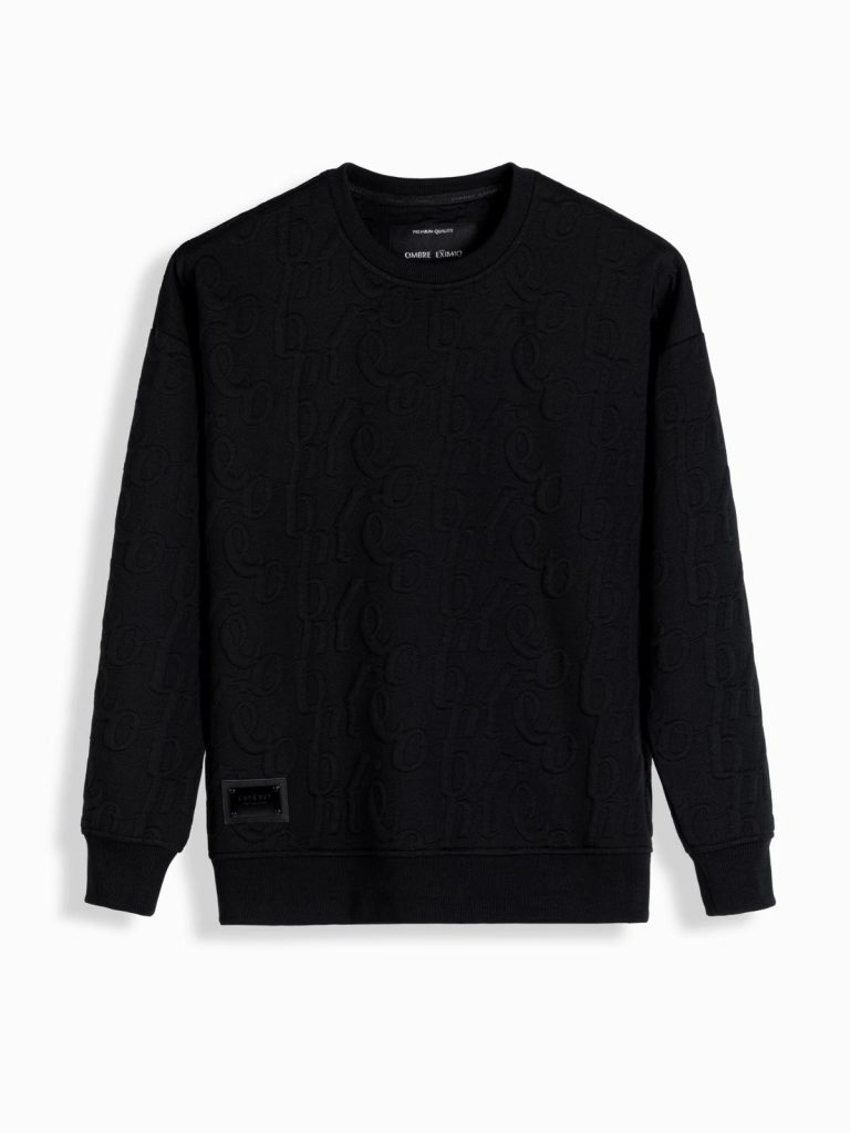 divatos pulóver kapucni nélkül kerek nyakkivágás strukturált kötött dombornyomott betűkkel az alsó rész és az ujjak szegéssel vannak befejezve anyaga: fő szövet - 100% poliészter anyaga: 100% pamut