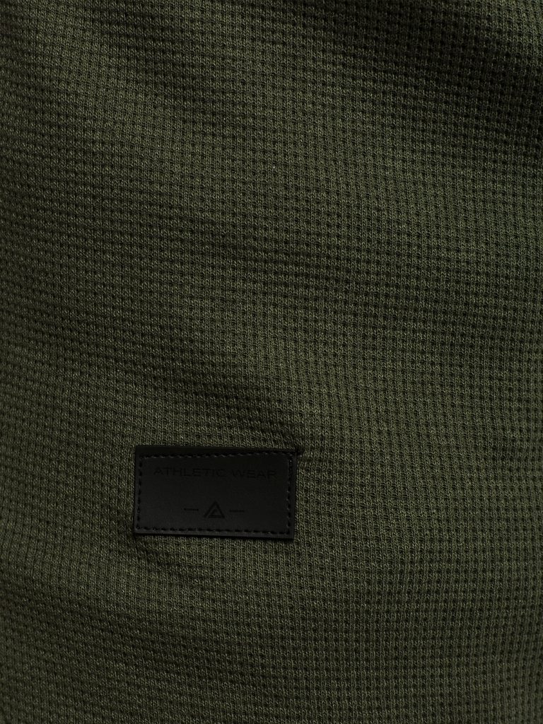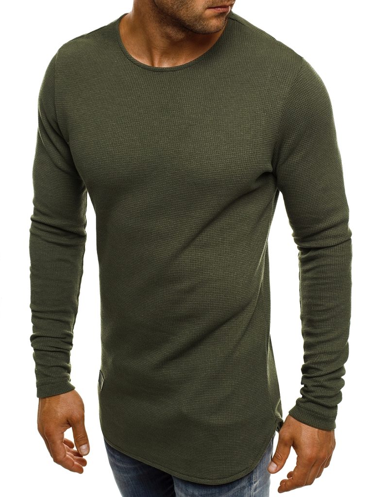 Modern, egyedi férfi hosszú ujjú póló. Kellemes viseletet biztosító, puha, szövetből készült. Enyhén testhezálló fazon, hosszú ujjakkal és kerek nyakkivágással. Minden szegély passzéval van elvégezve. Lekerekített alj. Feneket takaró hossz.