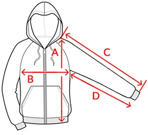 | Méret | Hossz A | Mellbőség B | Külső ujjhossz C | Belső ujjhossz D |