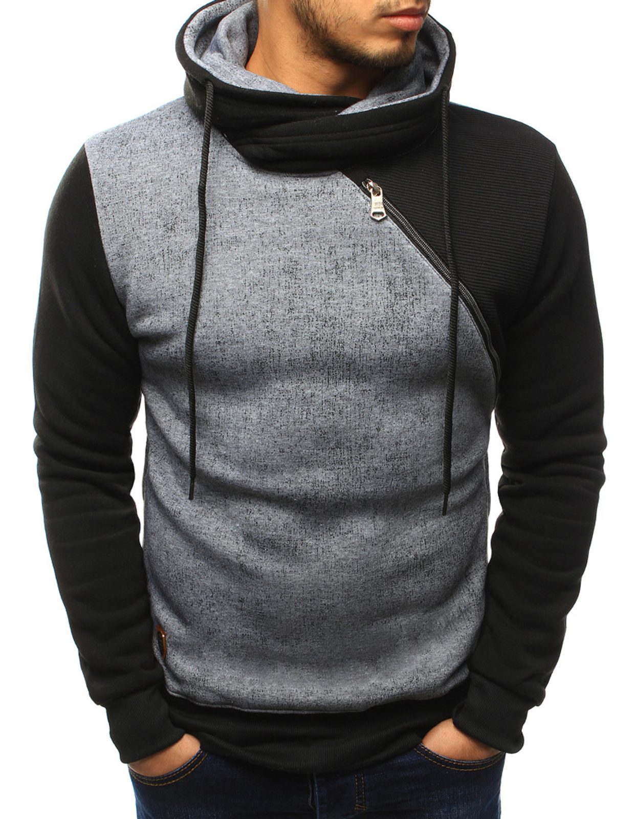 Ez egy rendkívül divatos, ugyanakkor könnyed anyaguknak köszönhetően kellemes magas nyakú mindennapos kényelmes viselést biztosító pulóver. Szürke színben, és fekete ujjakkal. Magas nyak, ferde cipzár a mellkas részén. Két cipzárral záródó oldalsó zsebbel. Megfelelő viselet a fiatalabb és az idősebb korosztálynak egyaránt ajánljuk. Tapintásra puha és kellemes, könnyen párosíthatóak farmerral vagy elegánsabb nadrággal.