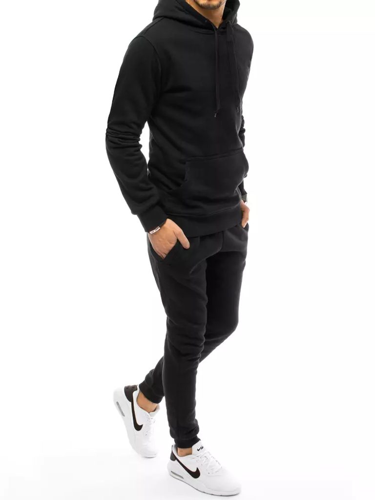Egyszerű kialakítású tréningruha. A szett puha és kellemes anyagból készült. Tartalmaz egy kapucnis pulóvert. A kétrétegű kapucni húzózsinórral rendelkezik, amelyen keresztül szabályozható a mérete. A kapucnis pulóver elején kenguru zseb található. Az alja és az ujjai bordázott aljjal rendelkeznek. A joggernek két elülső zsebe van. A joggerek derékszíja húzózsinórral állítható. A tréningruha alja és a derékpánt szegéllyel van lezárva. A tréningruha mindennapi viseletre alkalmas.