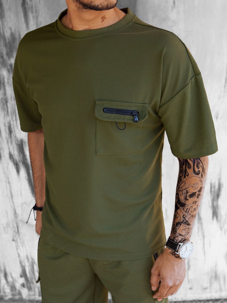 a póló kerek nyakkivágással és mellzsebtel rendelkezik