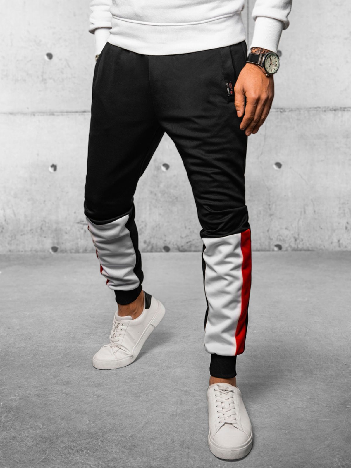 divatos férfi kocogó melegítőnadrág kényelmes vágás az övet zsinór szabályozza puha és kellemes tapintású anyagból készült a melegítőnadrág dereka és alsó része mandzsettával befejeződött két elülső zseb anyaga: 100% poliészter