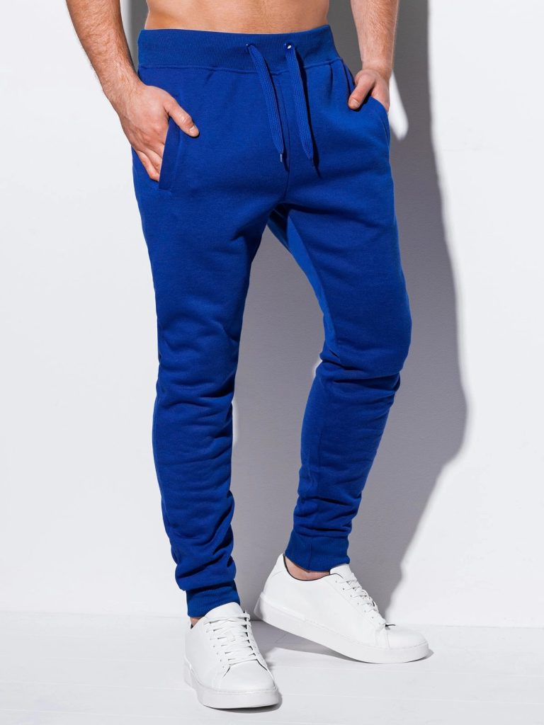 Kék hagyományos melegítő alsó. Mint két lábszárán benyulós zsebbel. Rugalmas derékrészén zsinórbehúzással. Lefelé szűkülő szárral, allja gumírozott. Kellemes viseletet biztosító anyagból.