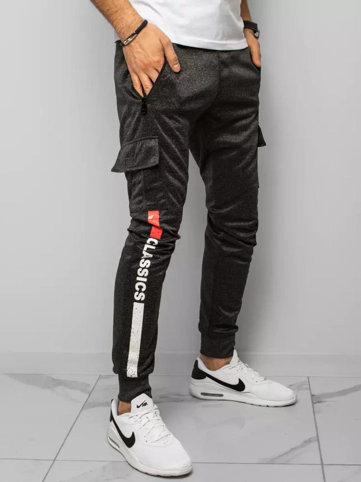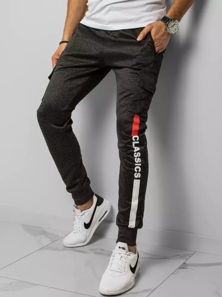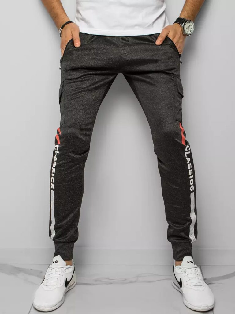 Kényelmes anyagból készült, sötét szürke melegítő alsó. Oldalsó színes csíkkal. Normál derékmagasságú, lezsér fazon, gumírozott nadrágszárakkal. Derékban gumírozott integrált öv és megkötő. Kétoldalt cipzáras zsebek. Egy farzseb. Sportoláshoz garantáltan kényelmes. Ha sportos a stílusod, akkor válaszd bátran ezt a modellt. A hétköznapokon szuperül megállja majd a helyét.